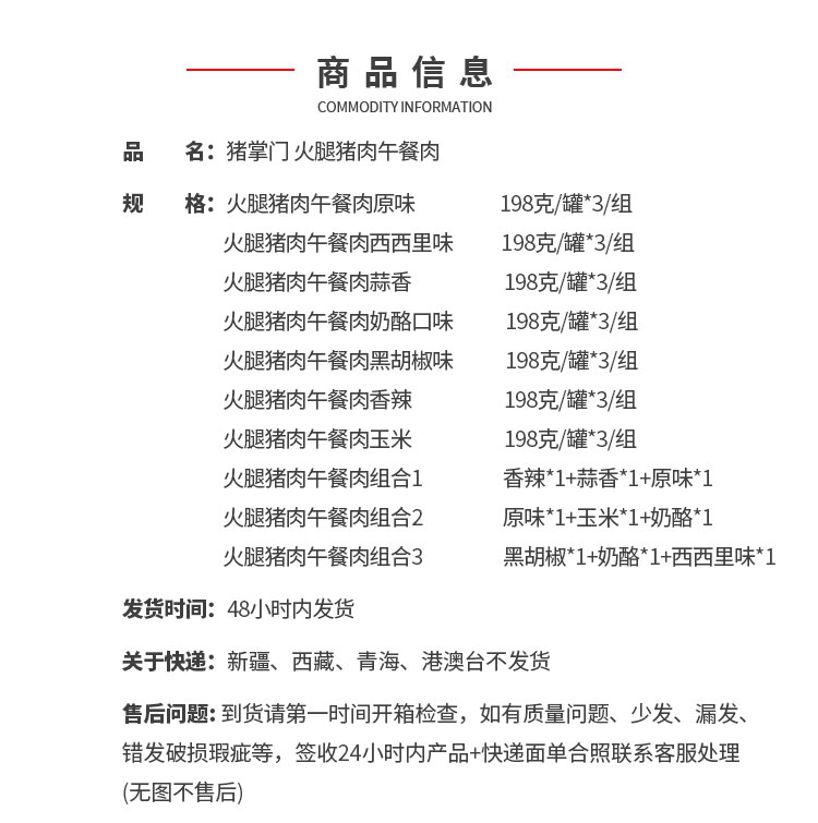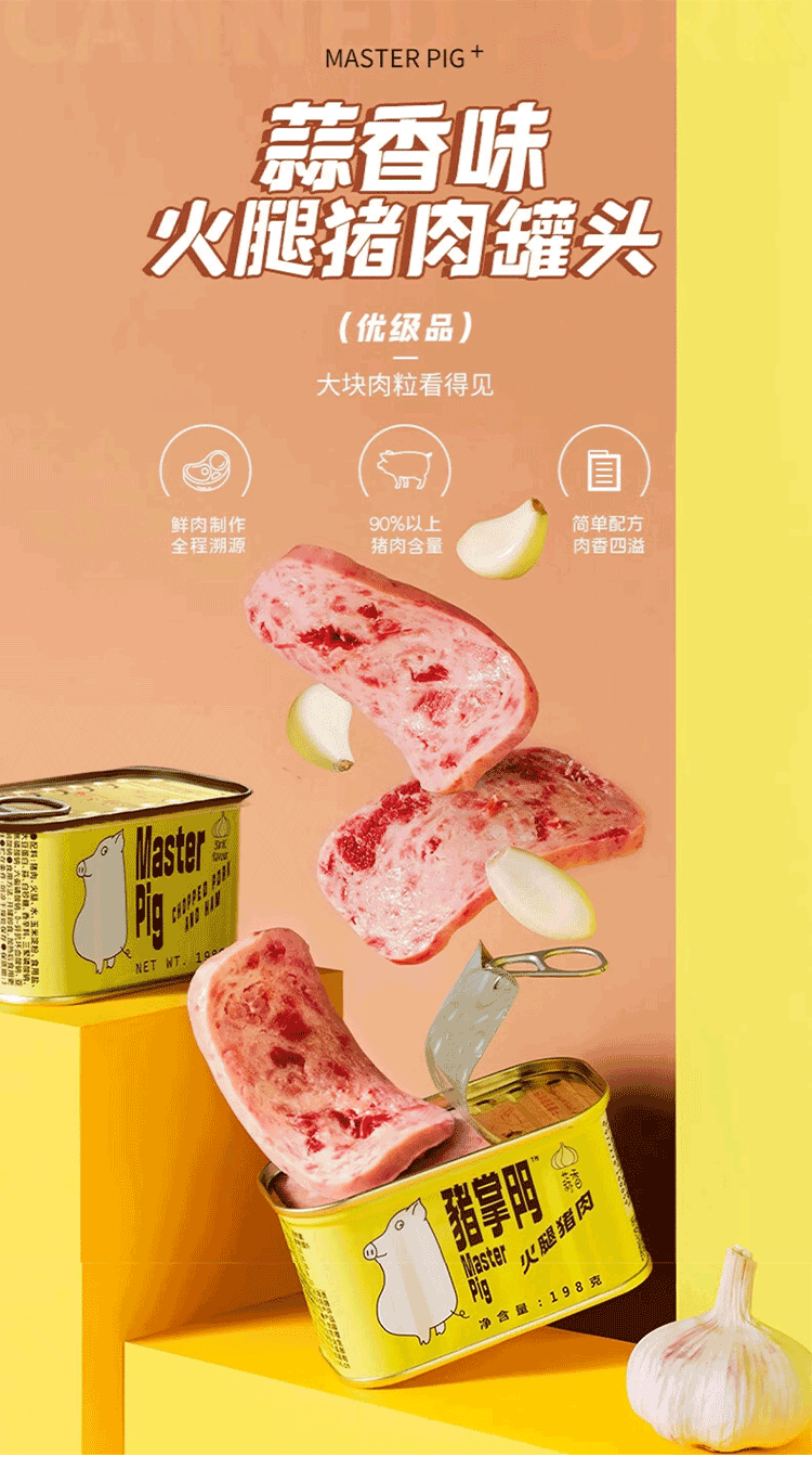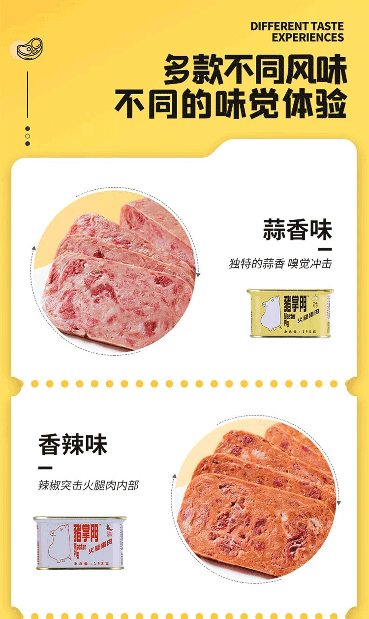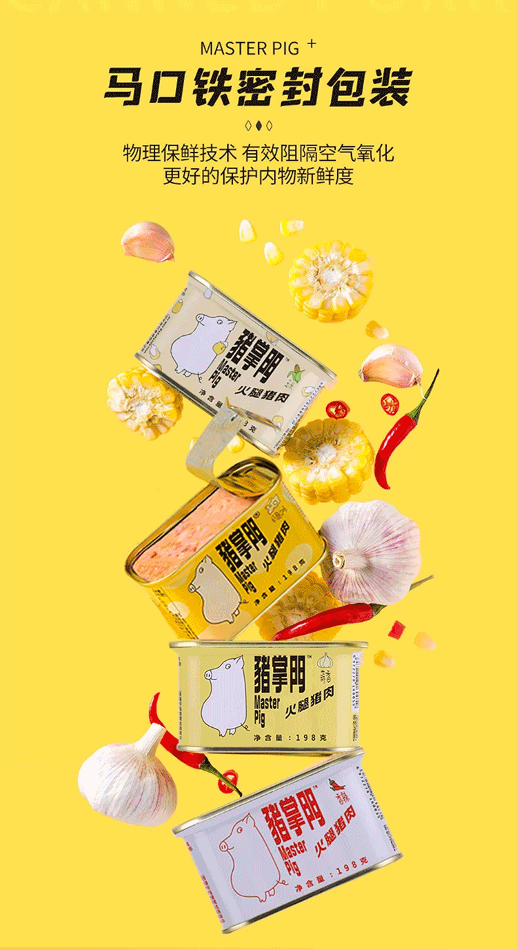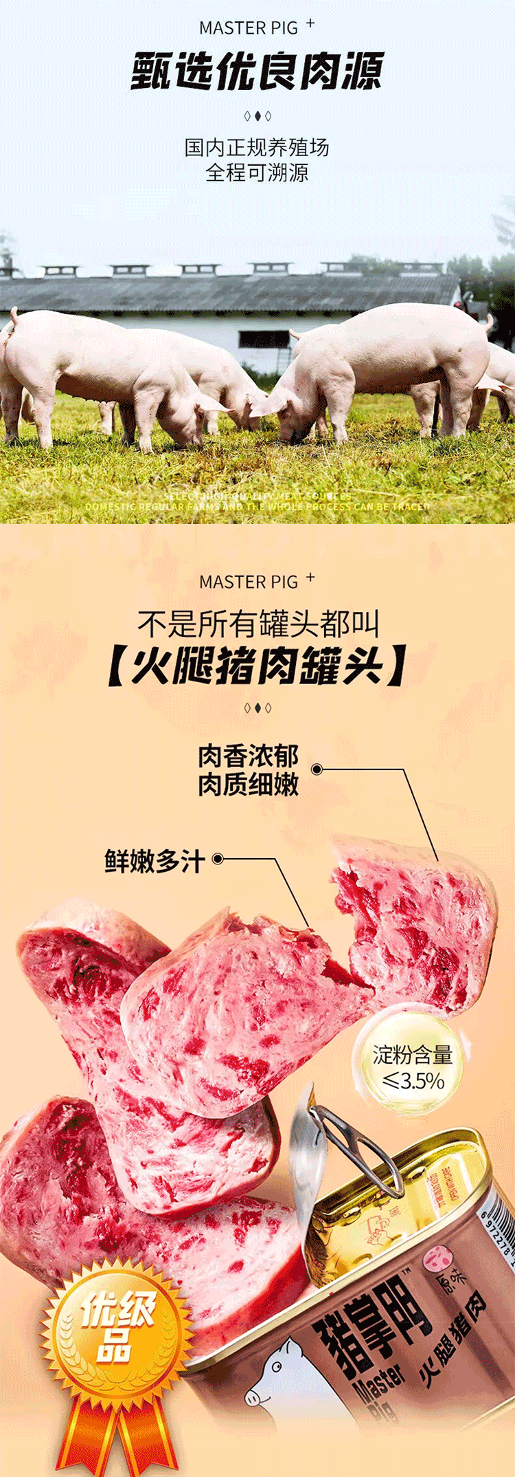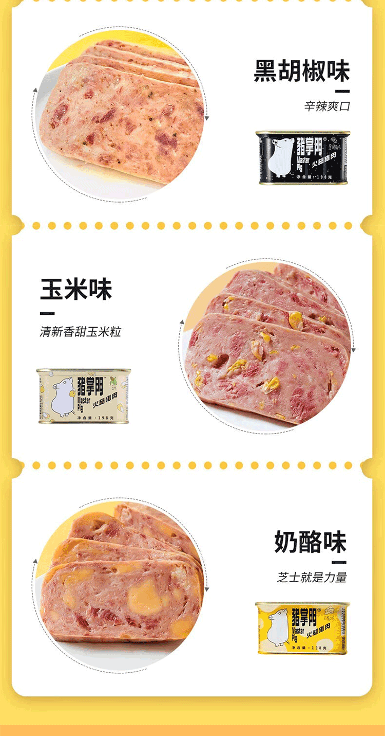 猪掌门 火腿猪肉午餐肉(198克/罐*3/组)