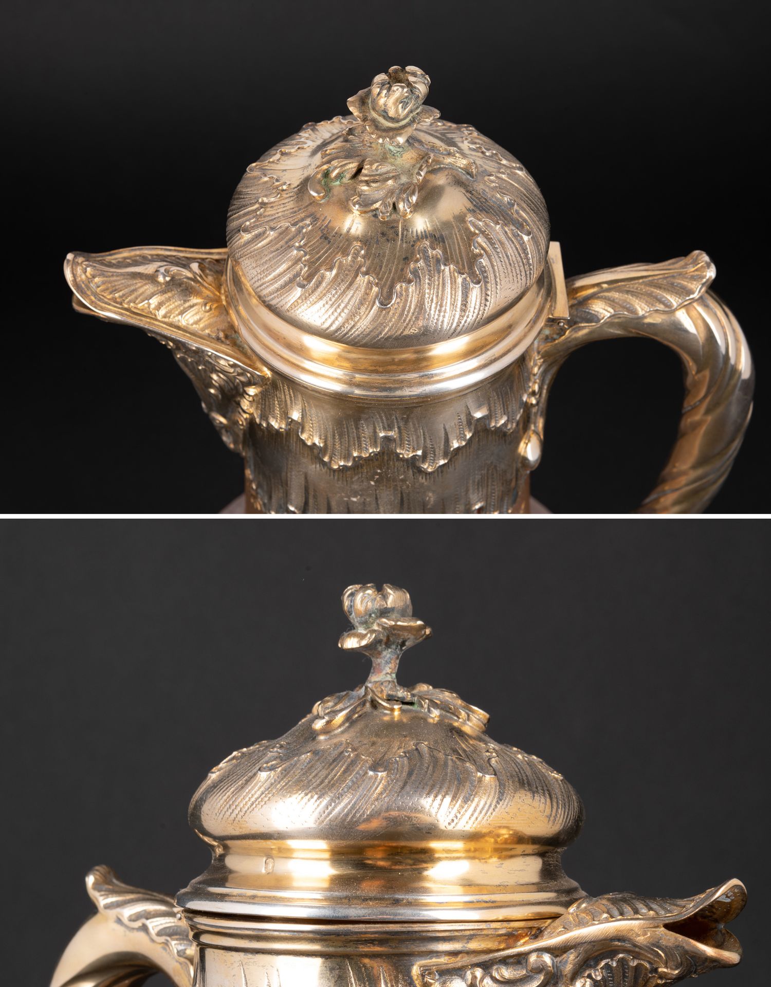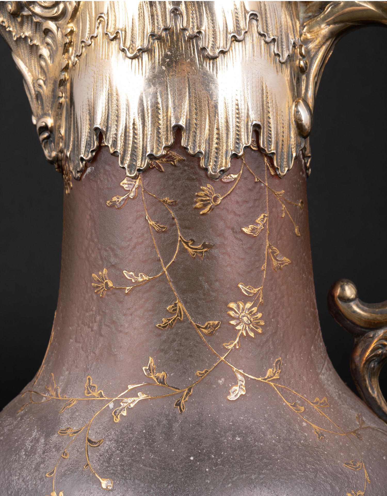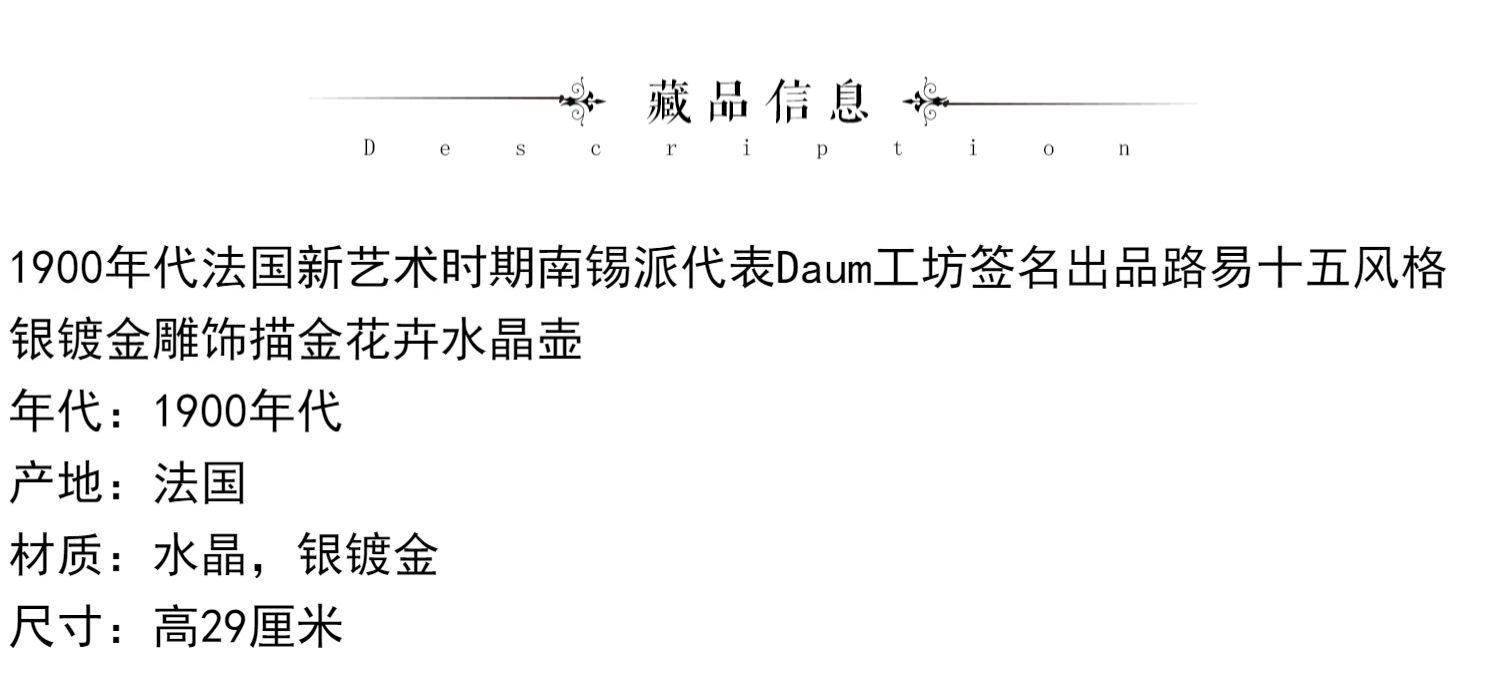 独角鹿西洋古董法国南锡派Daum路易十五风银镀金描金花卉水晶壶