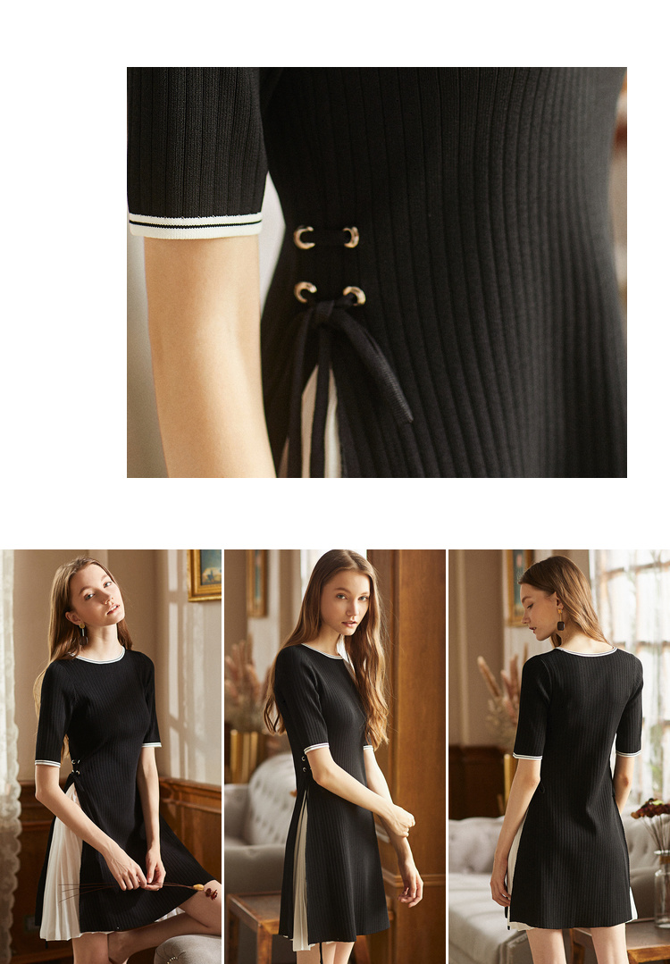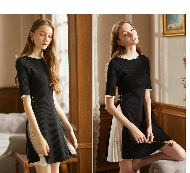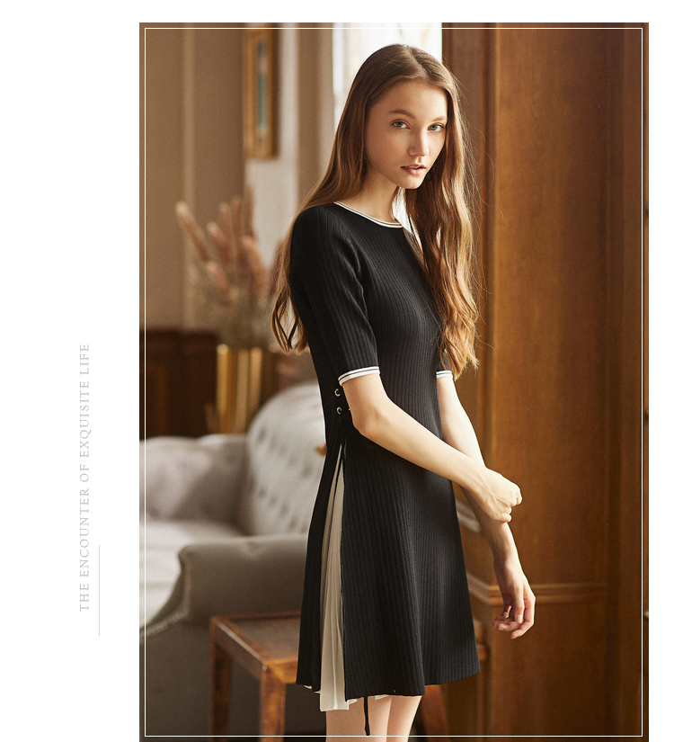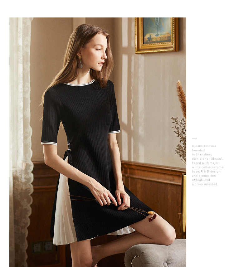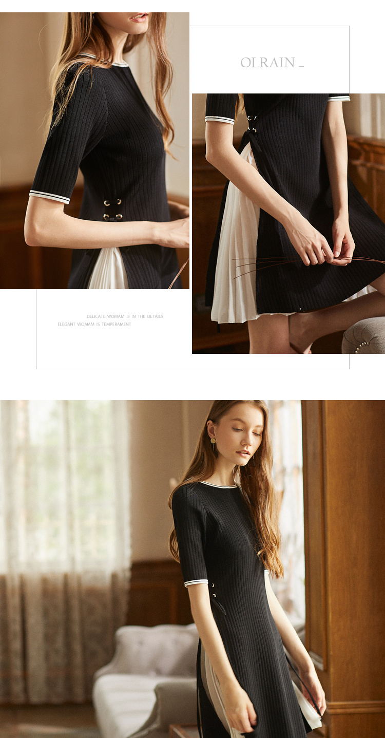 欧芮儿2018秋装新品韩版毛衣裙收腰黑色针织连衣裙女中长款[促]