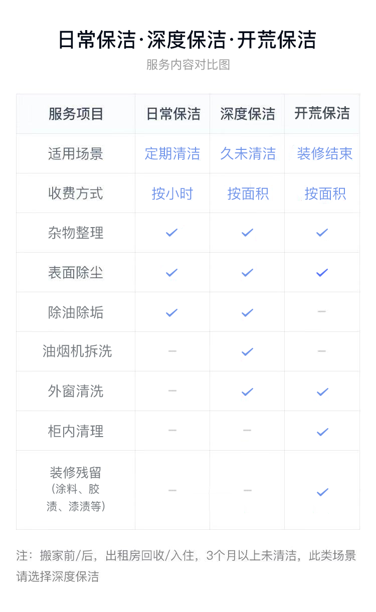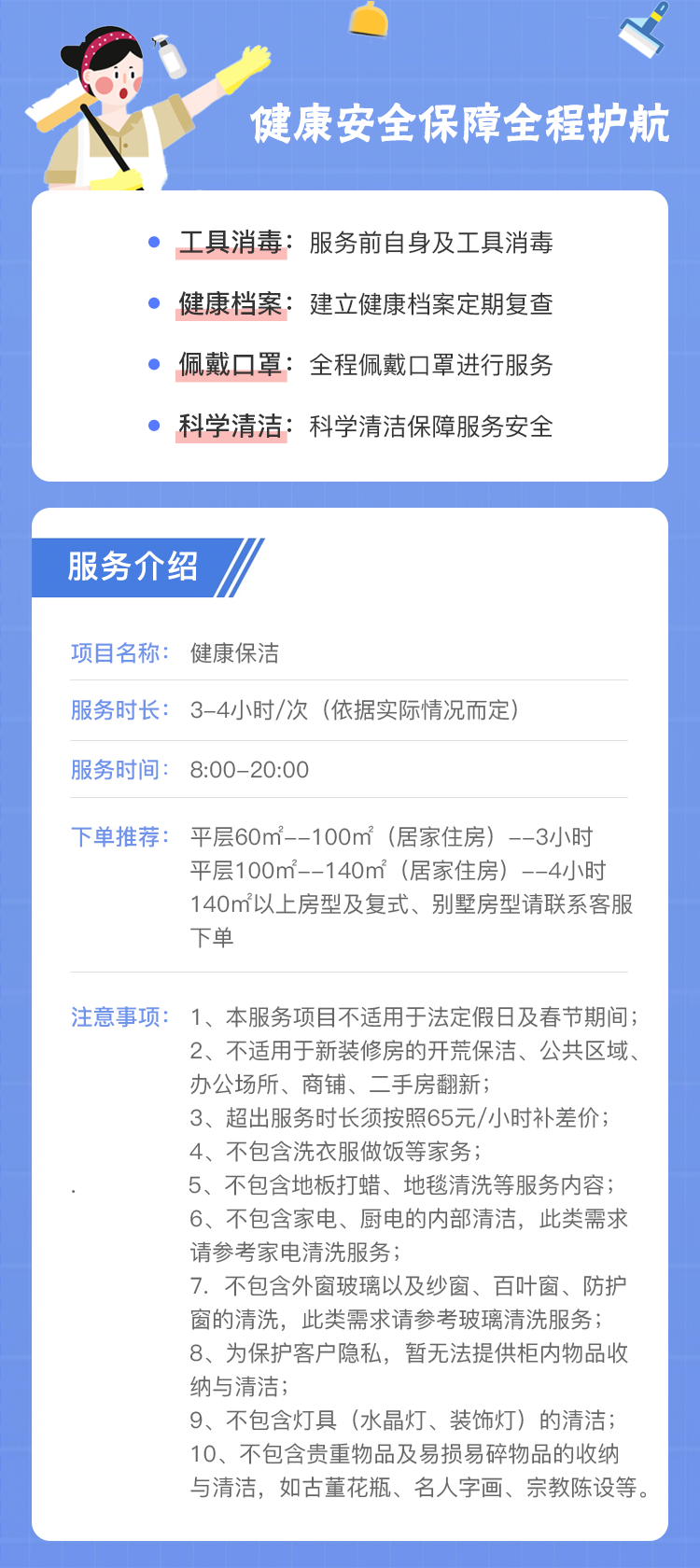 注:日常健康保洁Plus(4小时)增加高温消毒服务
