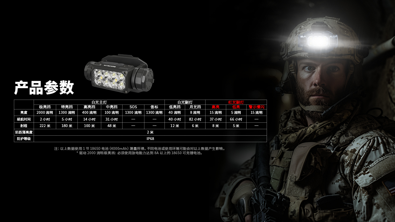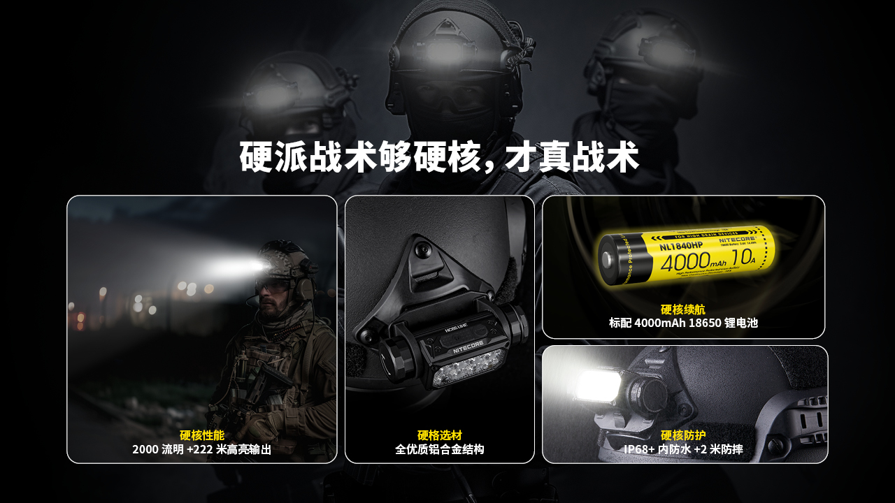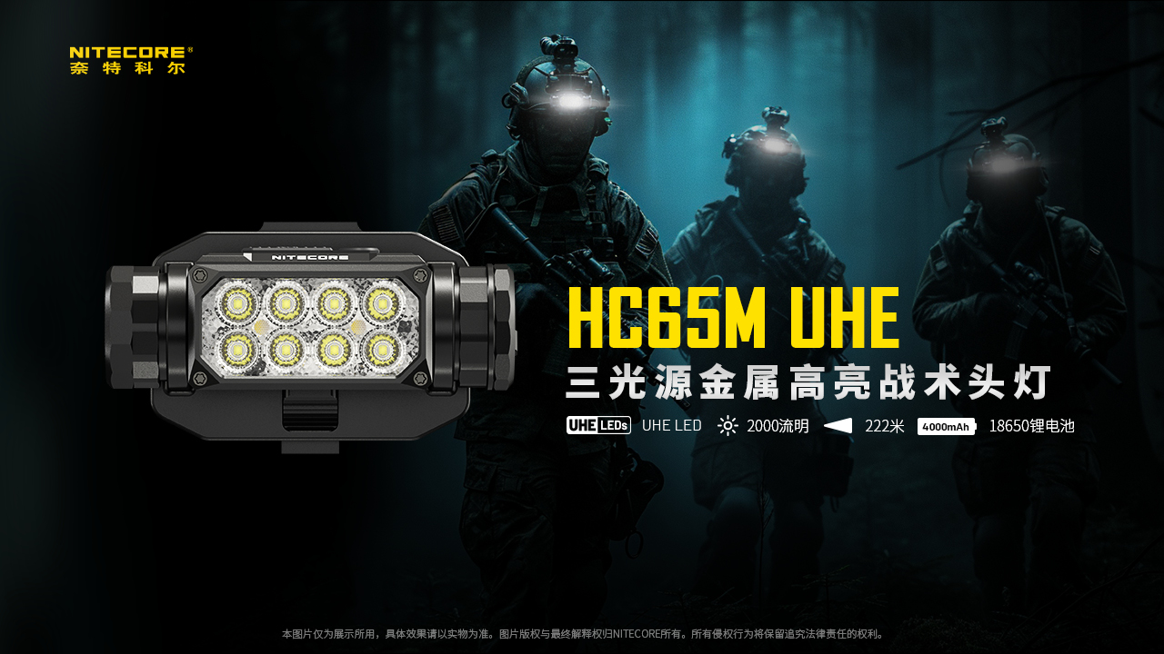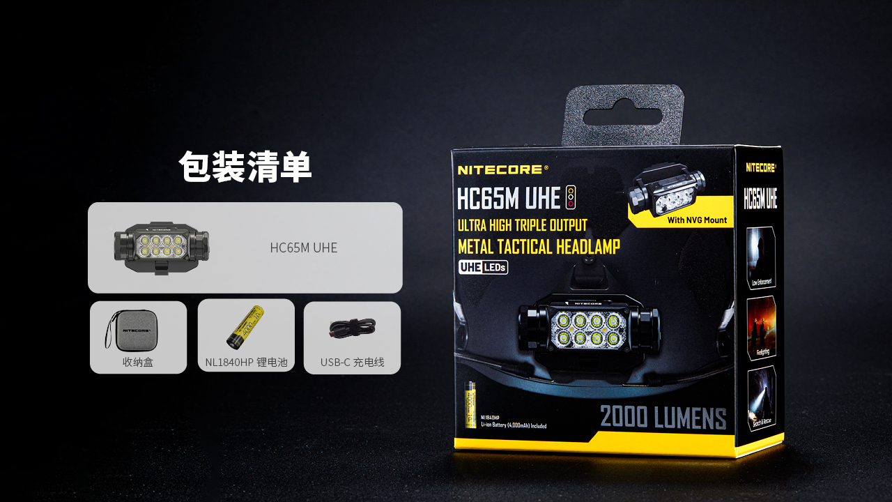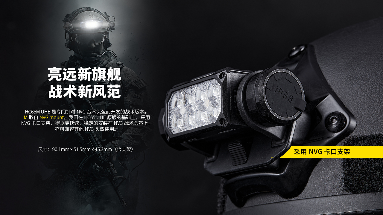 NITECORE奈特科尔HC65M UHE金属可充电双光源锂电池NVG底座墨鱼干 战术头盔灯