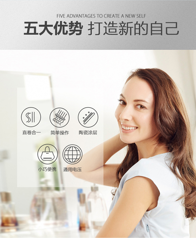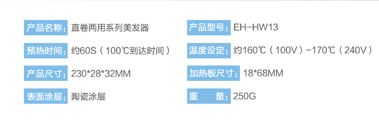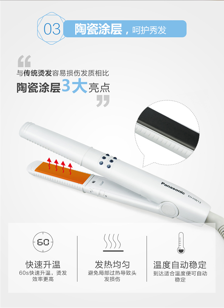 松下卷发棒 卷/直两用卷发直发夹板 刘海烫发美发卷发器直发器直板夹 EH-HW13-W
