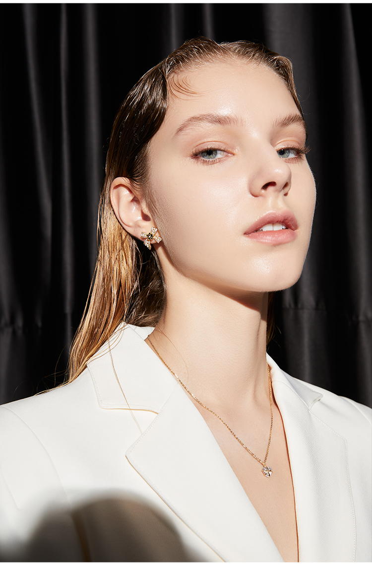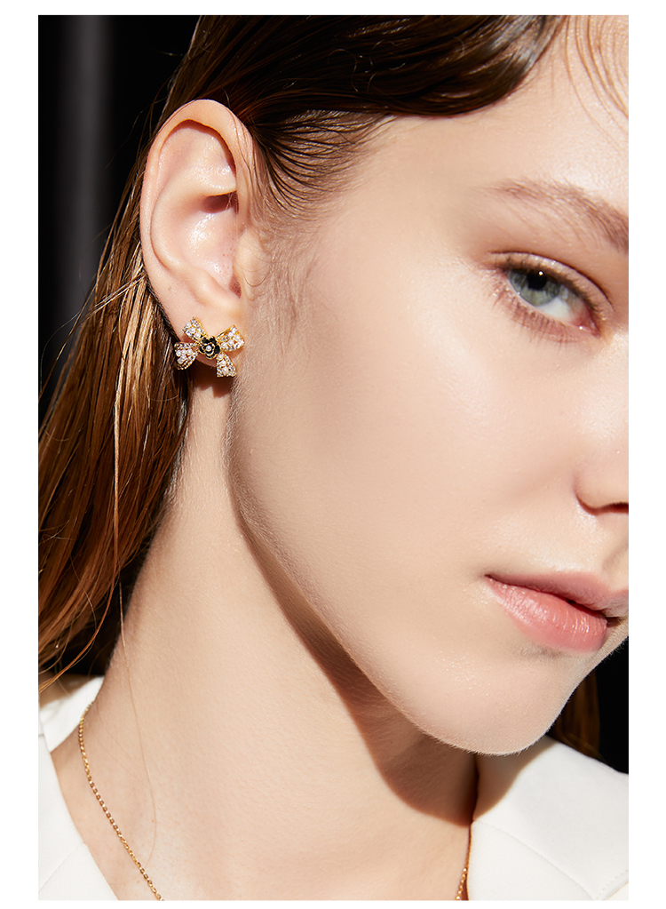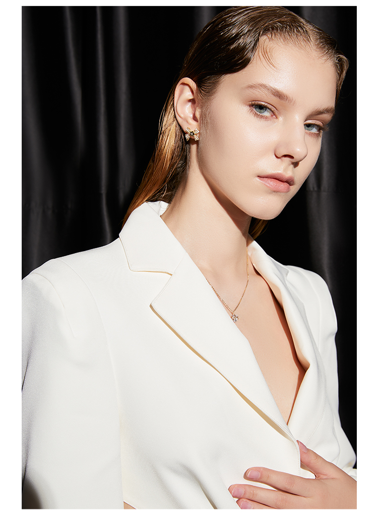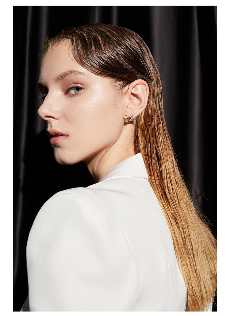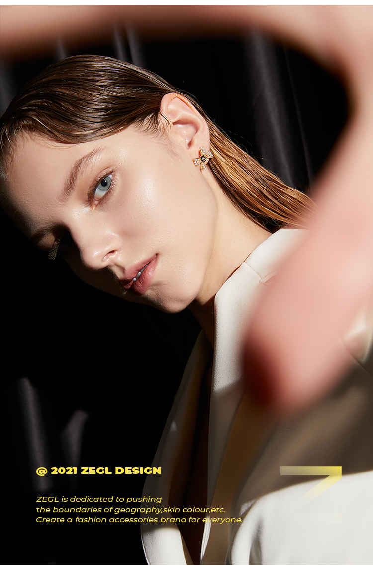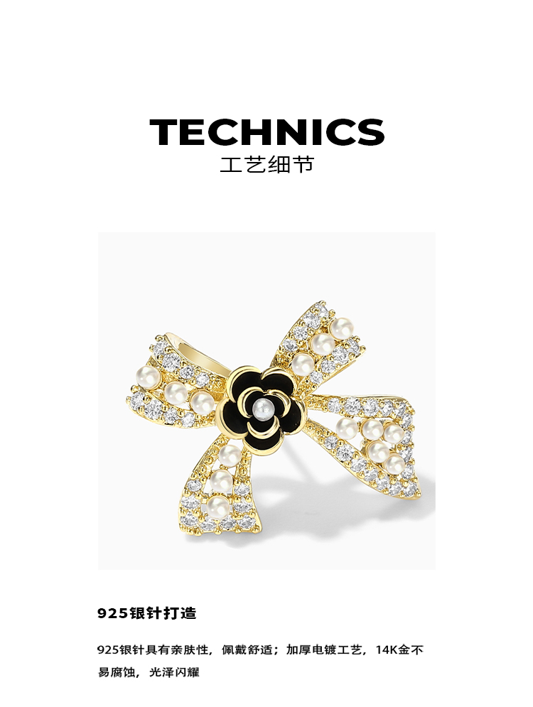ZEGL蝴蝶结山茶花耳钉女小众设计感耳环2021年新款潮925银针耳饰
