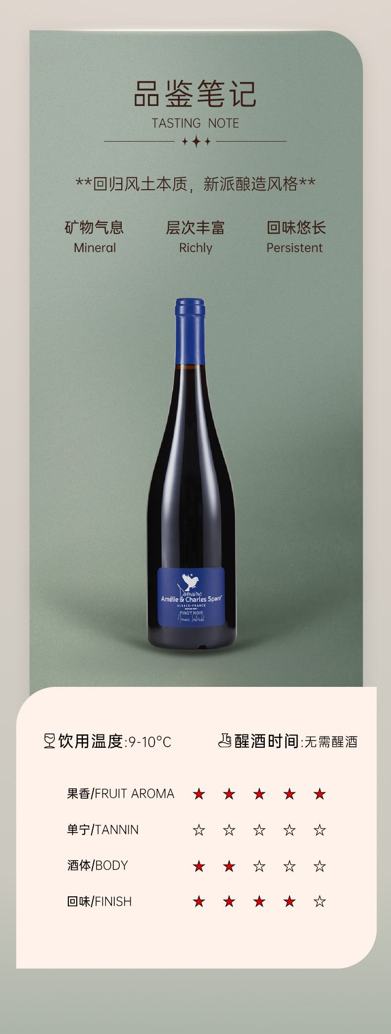 云雀酒庄黑皮诺“珍爱”Grand Cru葡萄园干红葡萄酒 DOMAINE AMELIE & CHARLES SPARR Pinot Noir Amour Interdit Grand Cru