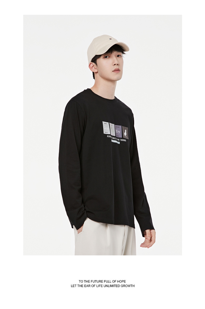 GXG男装【纯棉】秋季简约百搭男士圆领休闲打底长袖t恤衫K&C