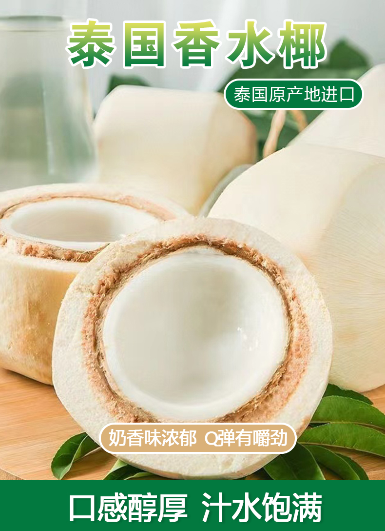 【分仓直发包邮】泰国香水椰青中果2个(约3-3.6斤)(送开椰器+吸管)