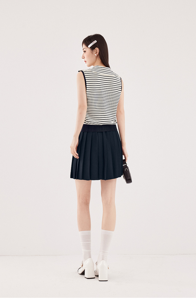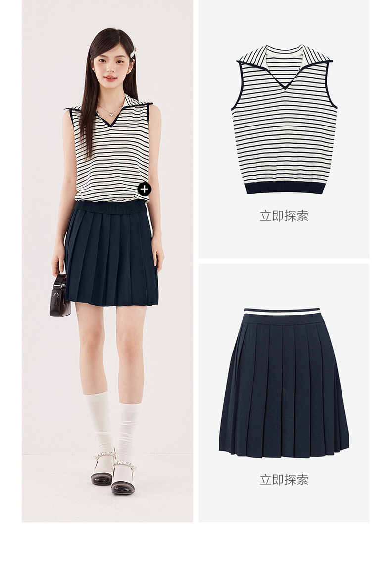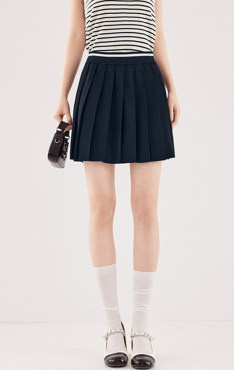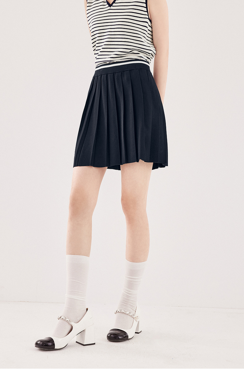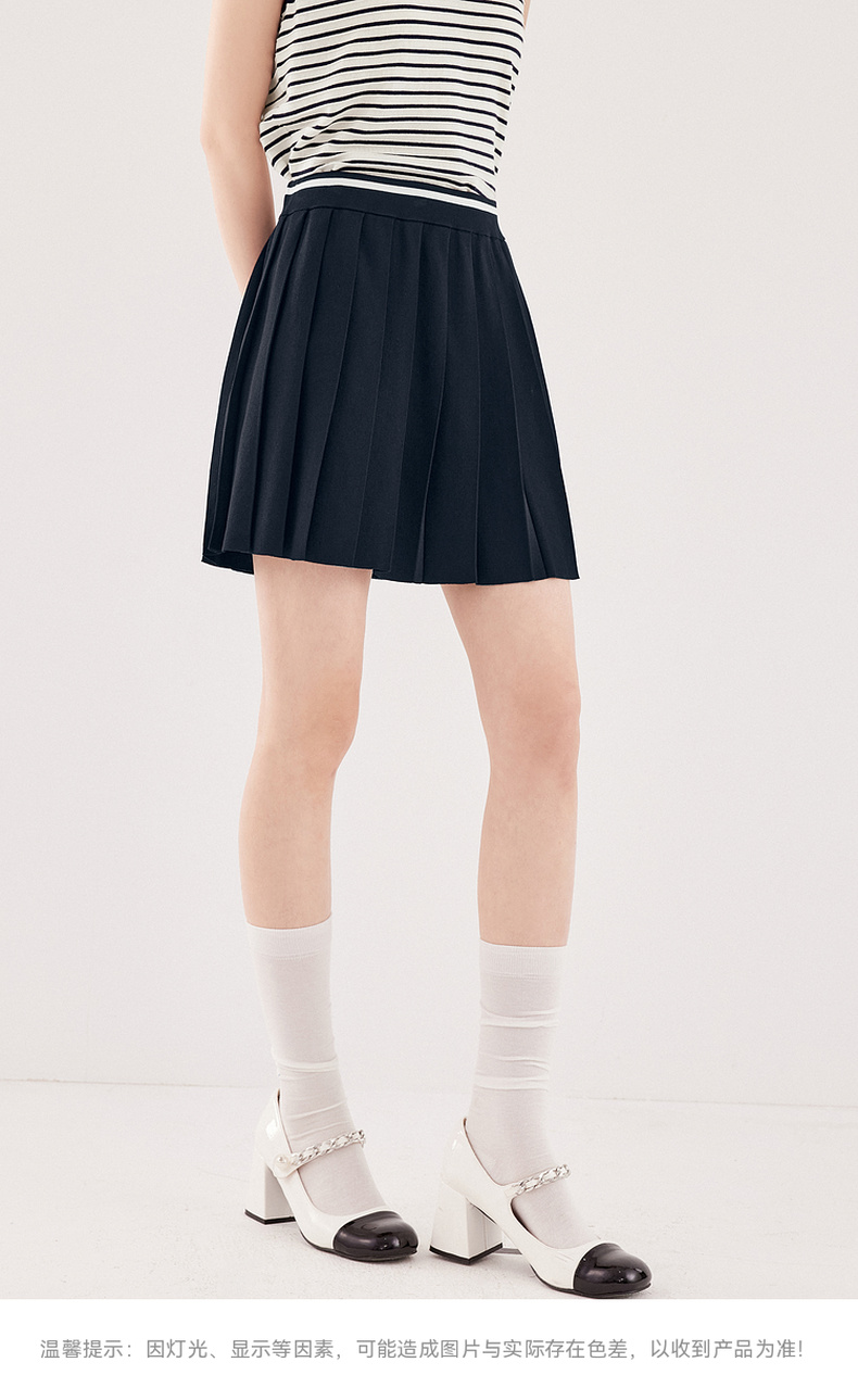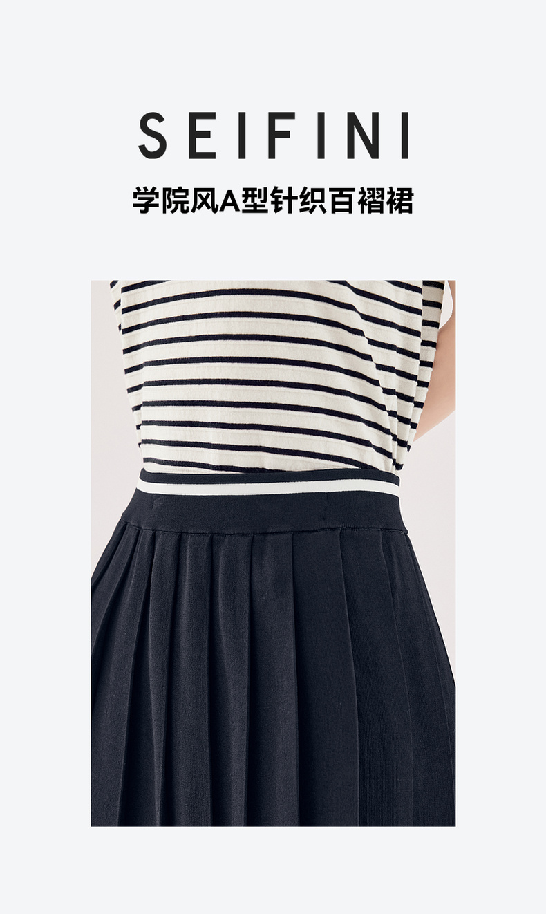 【严选】诗凡黎学院风针织百褶半身裙2024秋新款高知千金感遮胯显瘦短裙女SF7140891