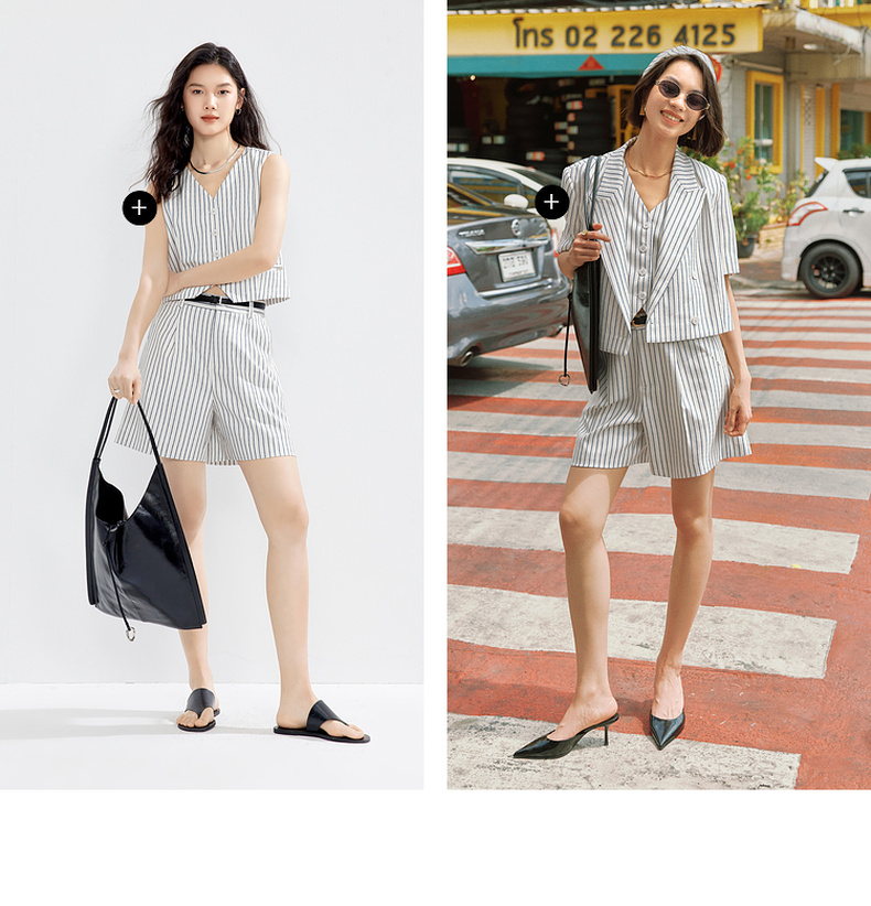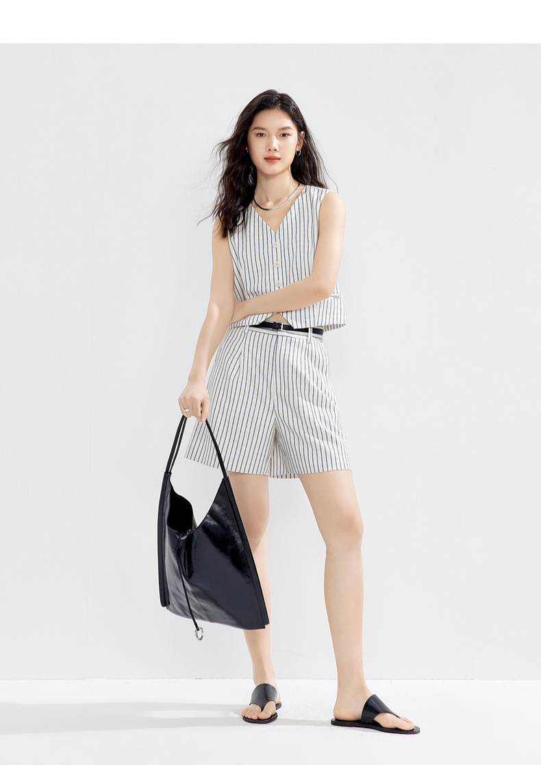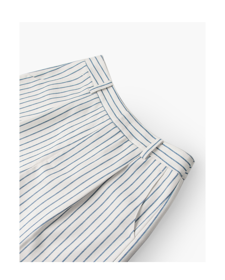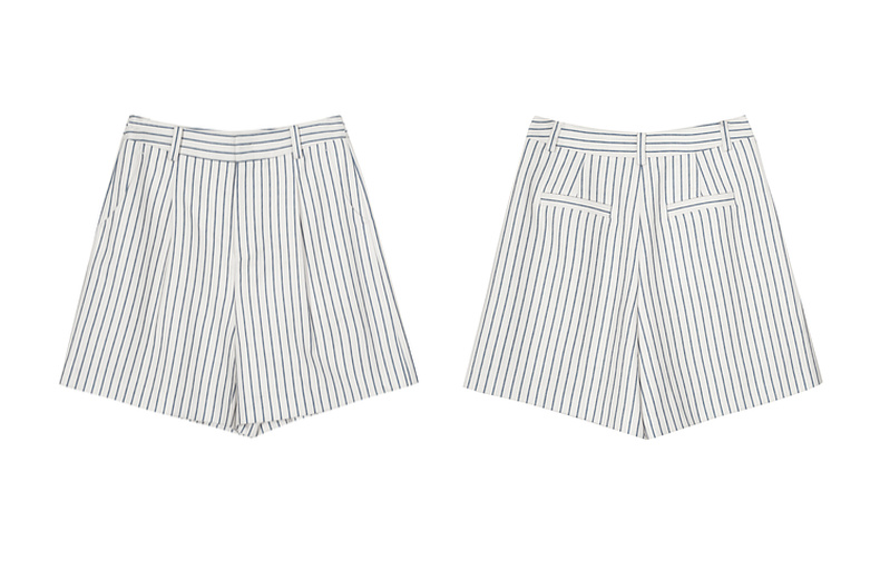 【严选】伊芙丽条纹褶裥宽松西装短裤1F3951132