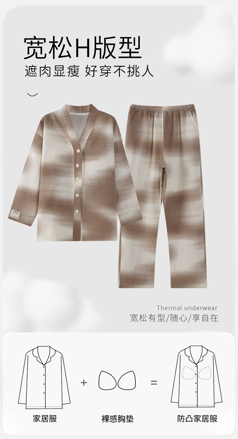 【云朵棉】洁丽雅秋冬女士家居服套装长袖长裤舒适亲肤大码睡衣女