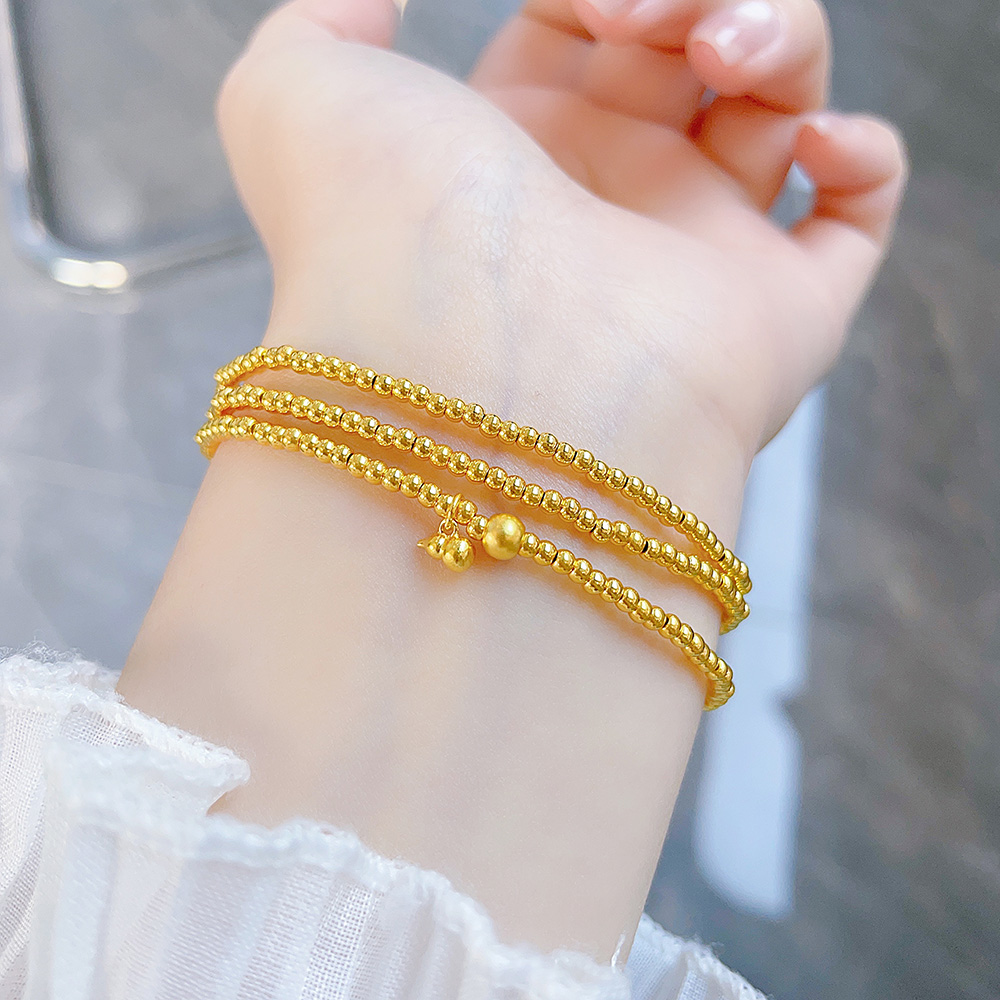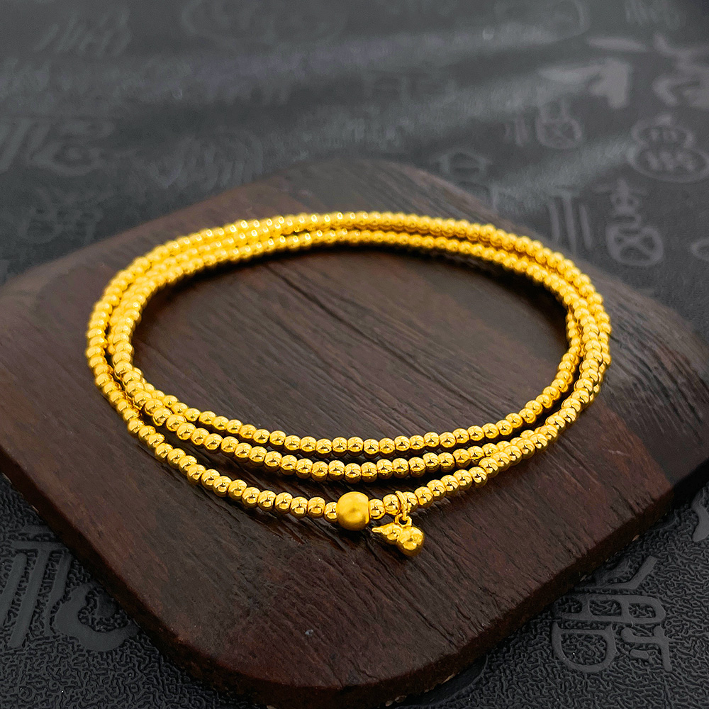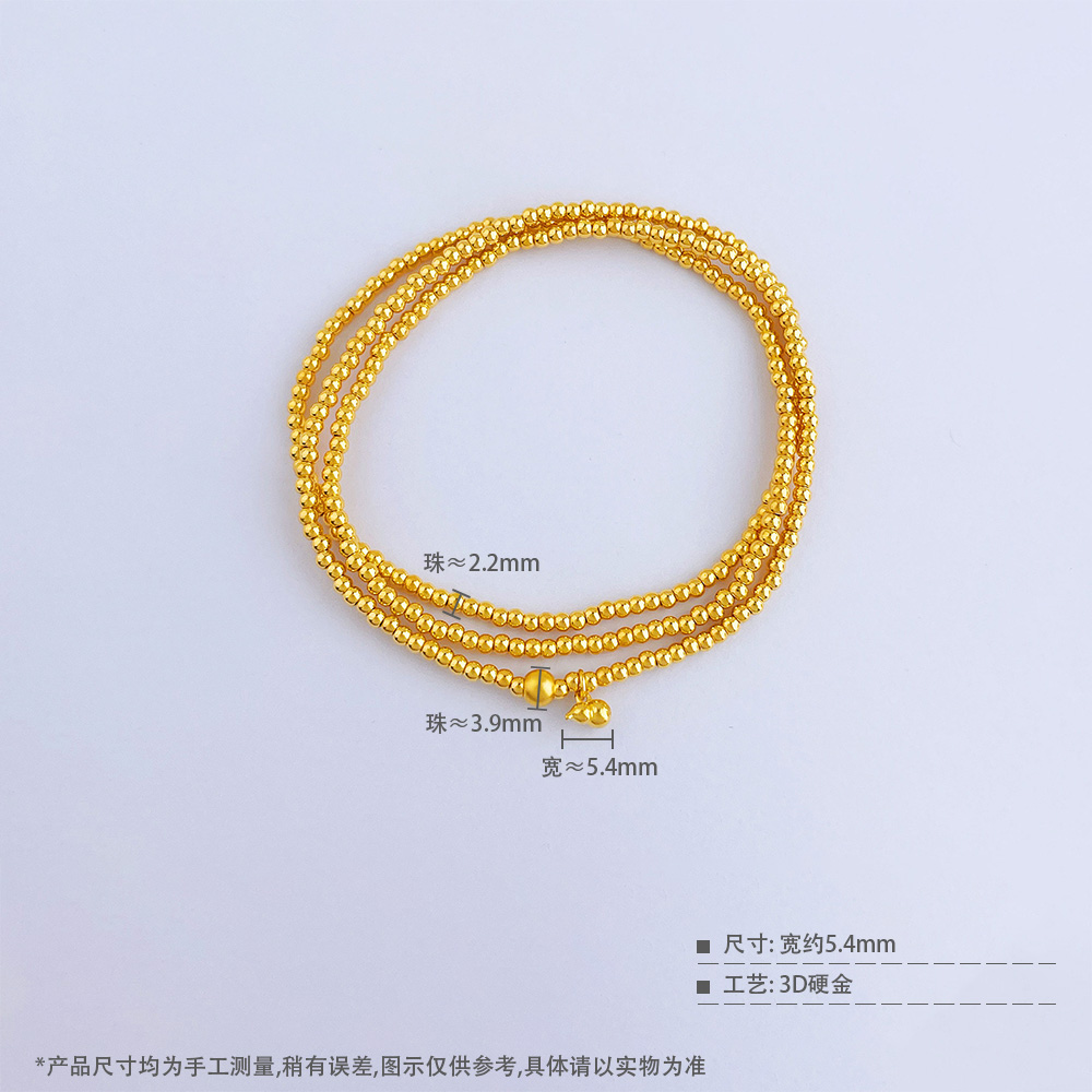 【限时克减150元】足金 【精品】3D硬金空心葫芦吊饰三圈幸运手串圆珠弹力绳成品手串(AK3DSC00023)预售产品下单后不退款不退货不换货不补差价