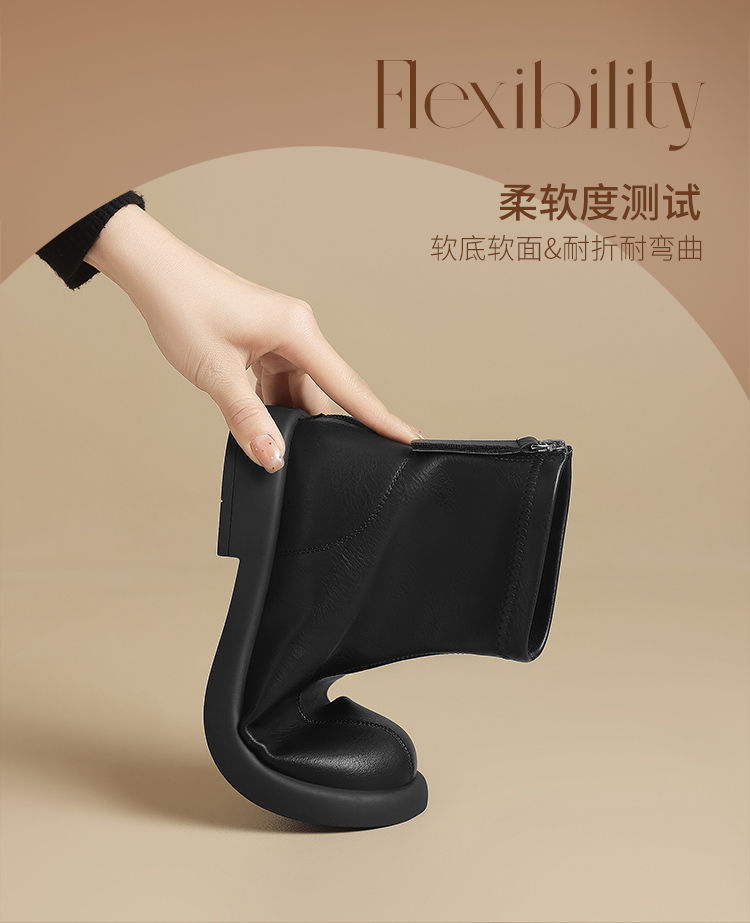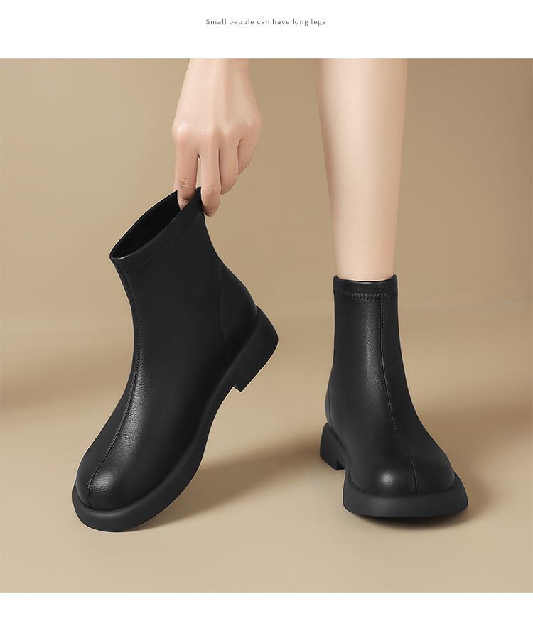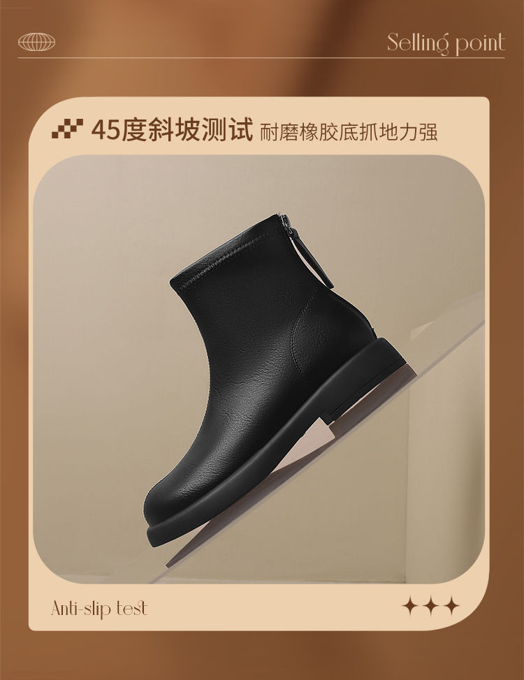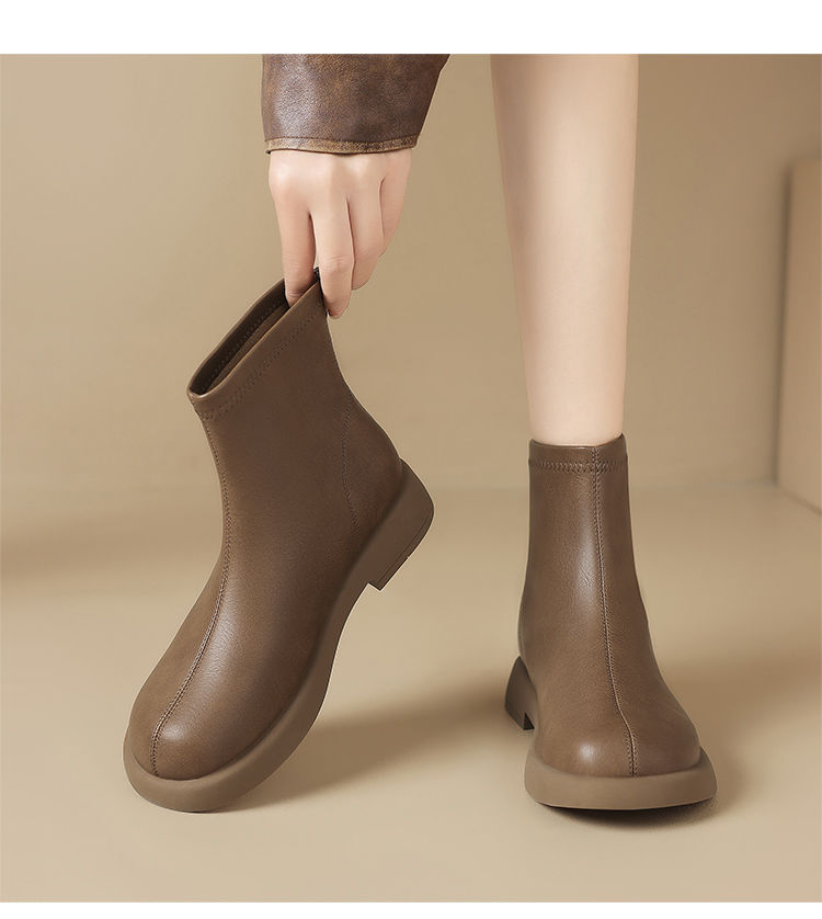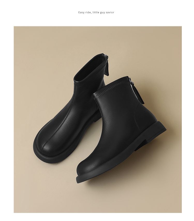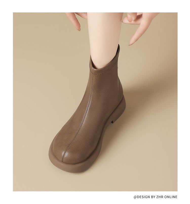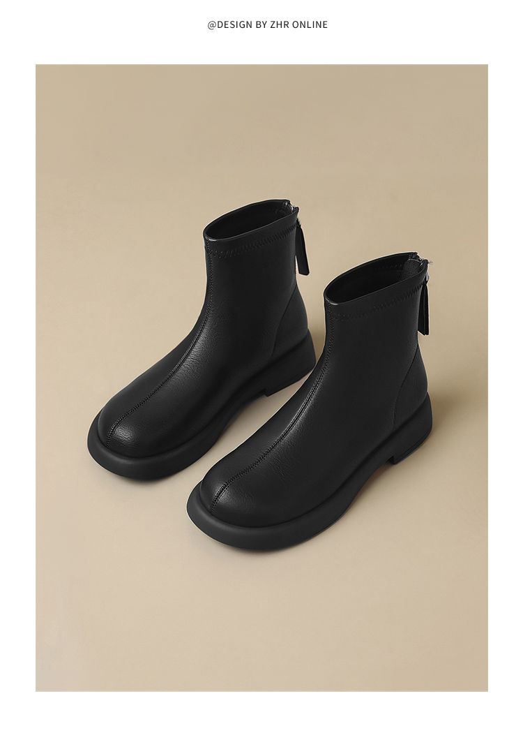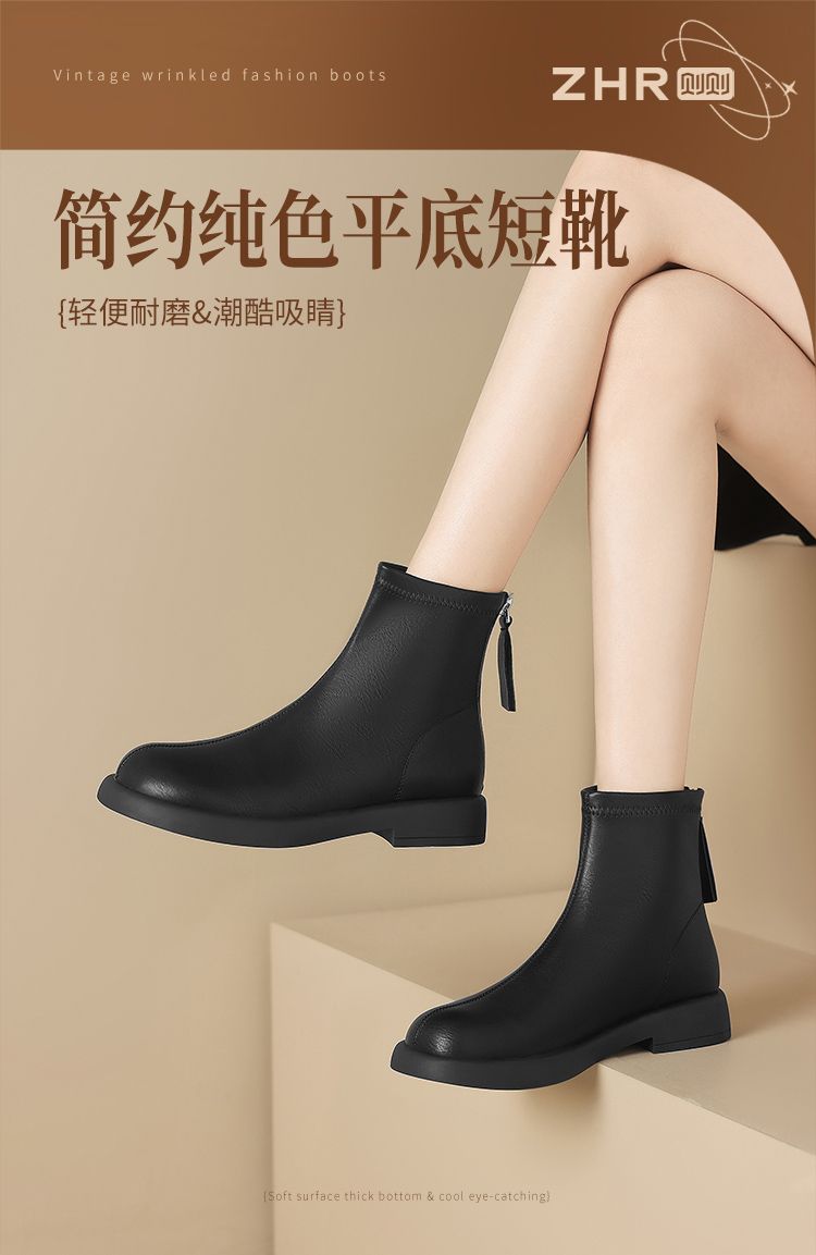 ZHR新中式短靴女2024新款高级废土风平底女靴法式圆头短筒马丁靴
