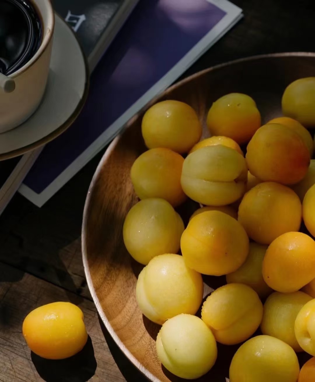 淡黄色的外表,个头很精致,熟度高一些的,摸起来软软的,像婴儿肌肤~熟度正常的,摸起来饱满圆润,一整框嫩黄发光,十分诱人!