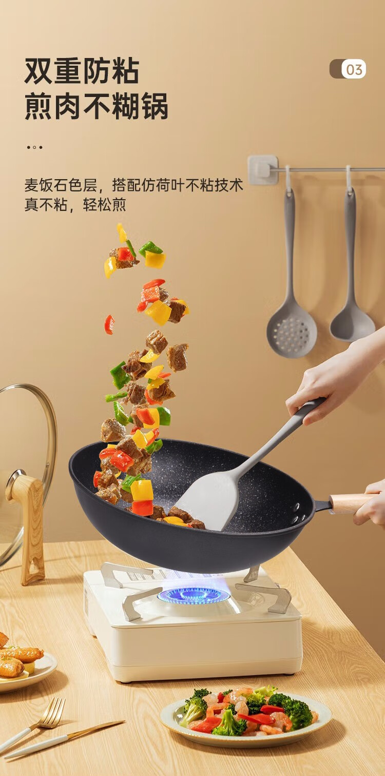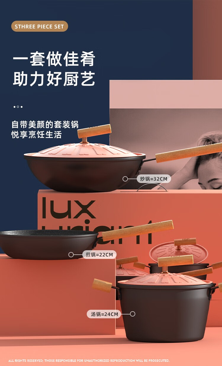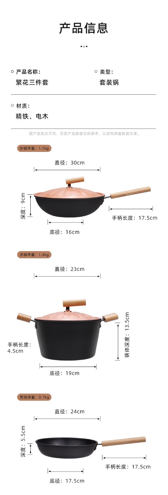 IBF艾博菲艾博菲繁花炒锅汤锅煎锅锅具套装精铁套装三件套【K】