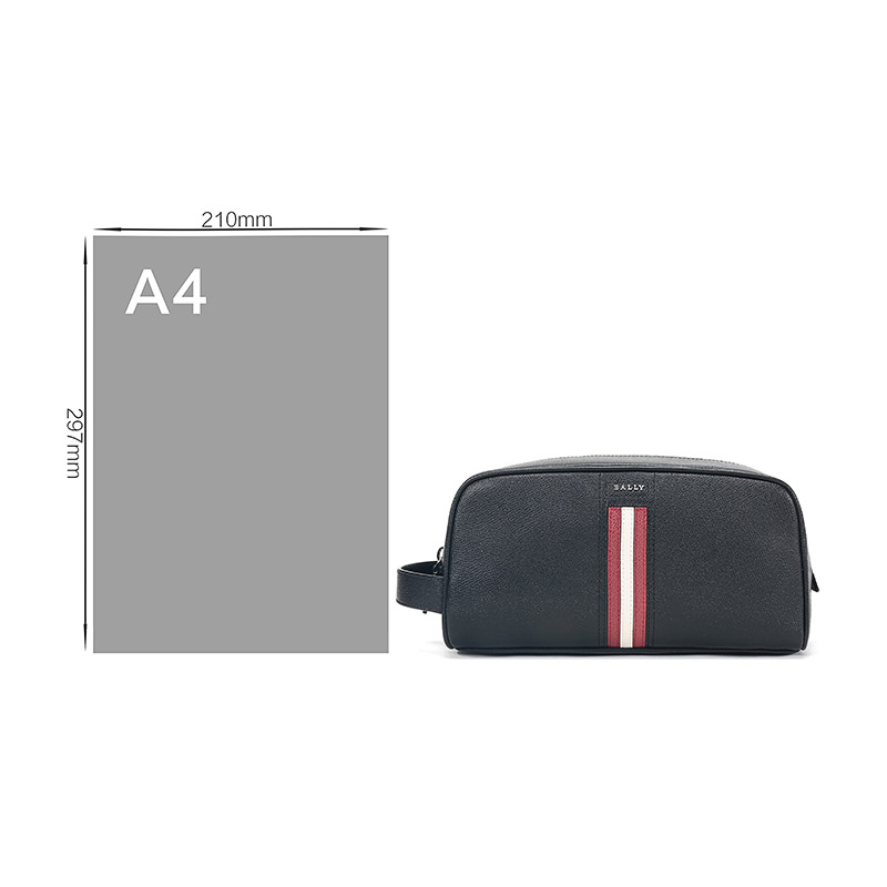 ![]() | 品牌:BALLY 巴利 产地:中国等国(批次不同、产地不同) 款式:男士 颜色:黑色红白条纹 材质:皮质 产品结构:拉链开合,内置4个贴袋 产品尺寸:宽约26cm,高约13cm,厚约10cm(注:所有尺寸皆为手工测量,存在误差,请以实物为准!)