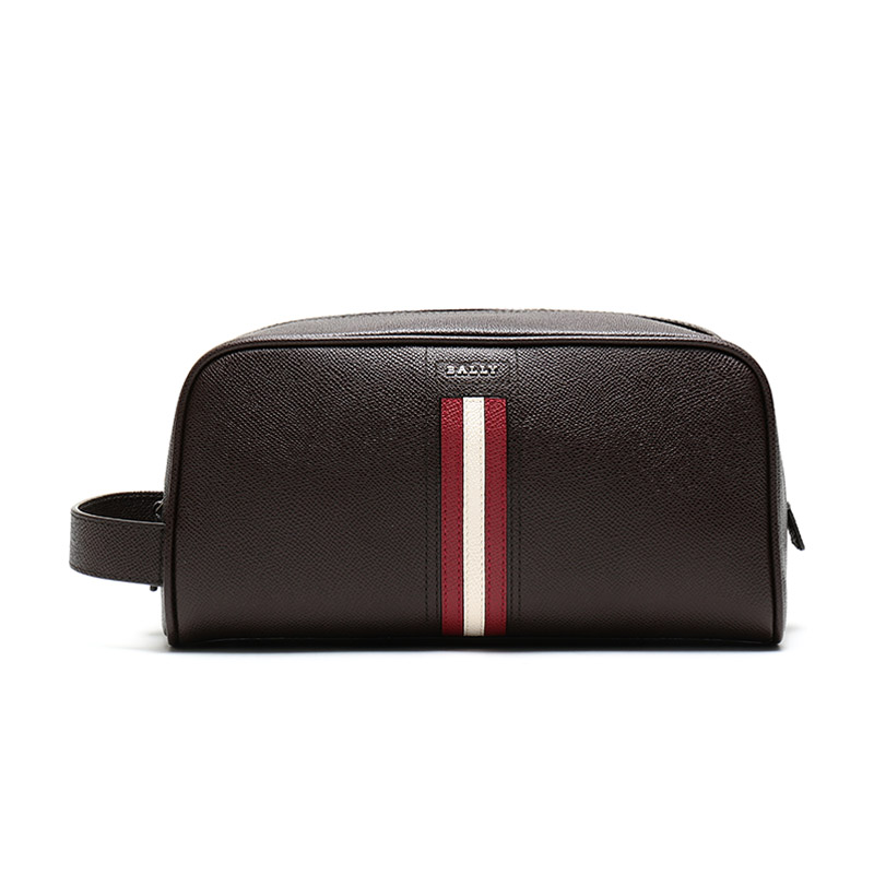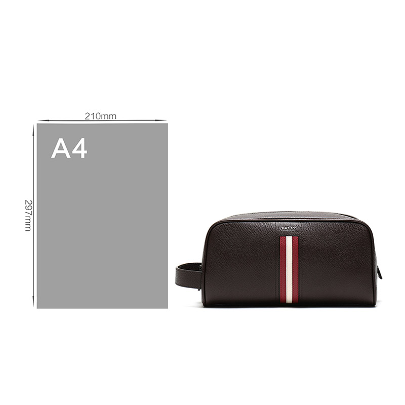 ![]() | 品牌:BALLY 巴利 产地:中国等国(批次不同、产地不同) 款式:男士 颜色:咖啡色红白条纹 材质:皮质 产品结构:拉链开合,内置4个贴袋 产品尺寸:宽约26cm,高约13cm,厚约10cm(注:所有尺寸皆为手工测量,存在误差,请以实物为准!)
