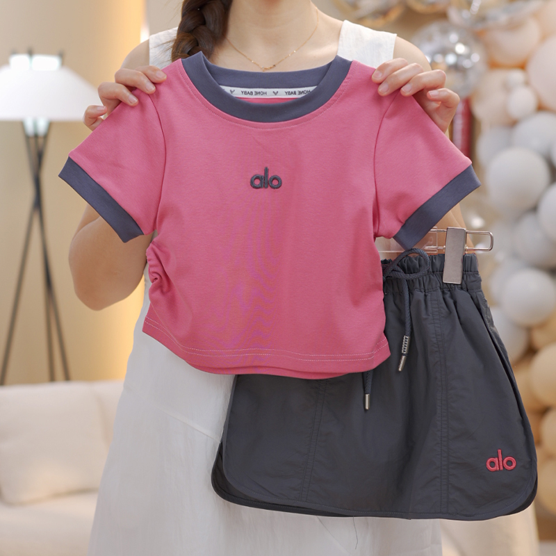 【女童夏季短袖裙裤套装】韩版无袖连帽套装宝宝纯棉短袖运动短裙裤撞色T恤两件套童装