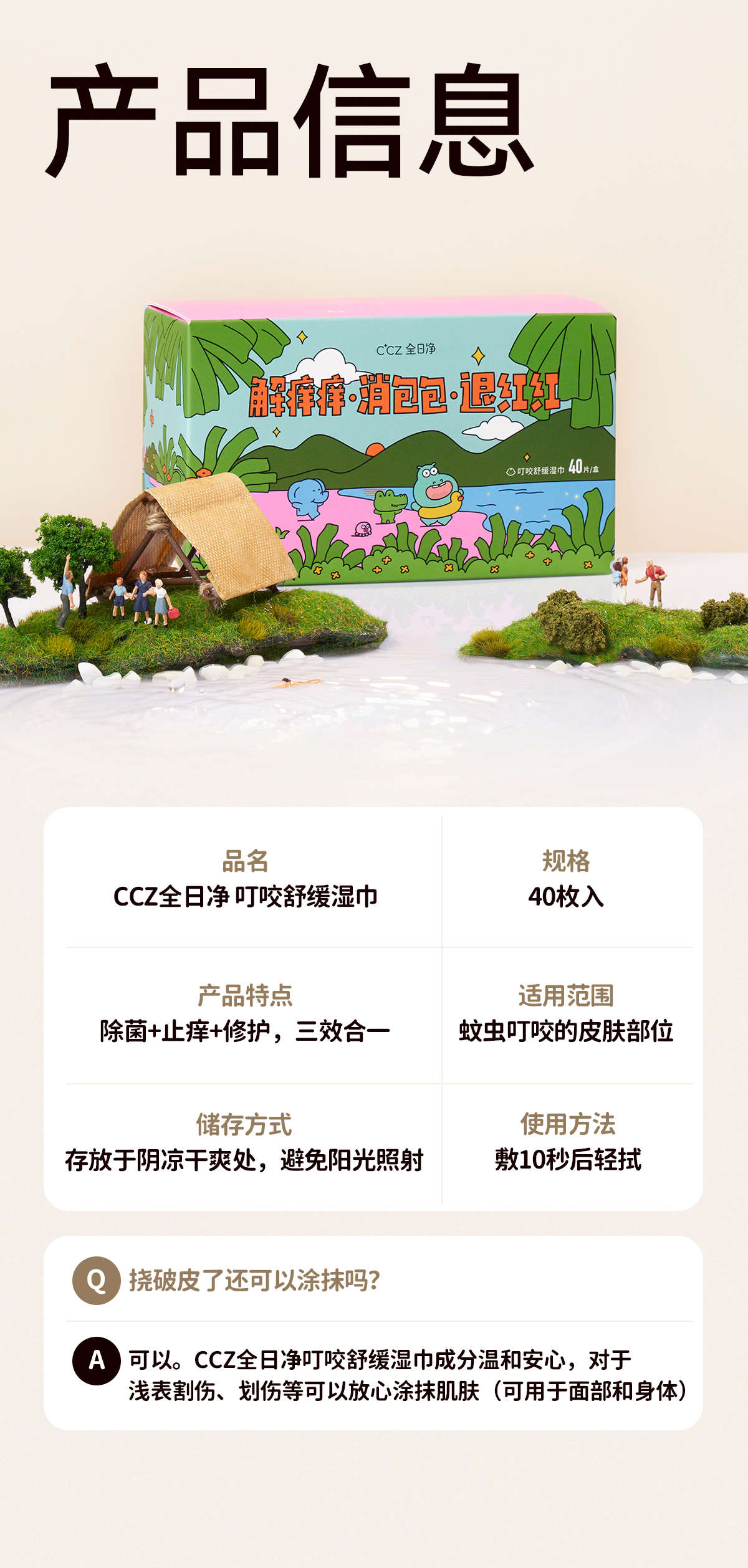 CCZ全日净止痒舒缓湿巾孕妇宝宝户外蚊子蚊虫叮咬止痒修护
