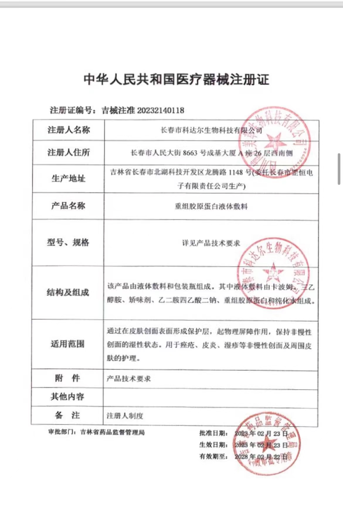 域发重组胶原蛋白液体敷料 ,曾用名液体敷料(头皮护理型),早晚涂抹于脱发部位的头皮,指腹按摩5-10分钟促进吸收。使用疗程6个月起,可长期使用。