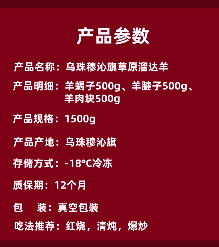 【发出后不支持拦截退货】牧森甄 乌珠穆沁旗草原羊单品组合 1500g