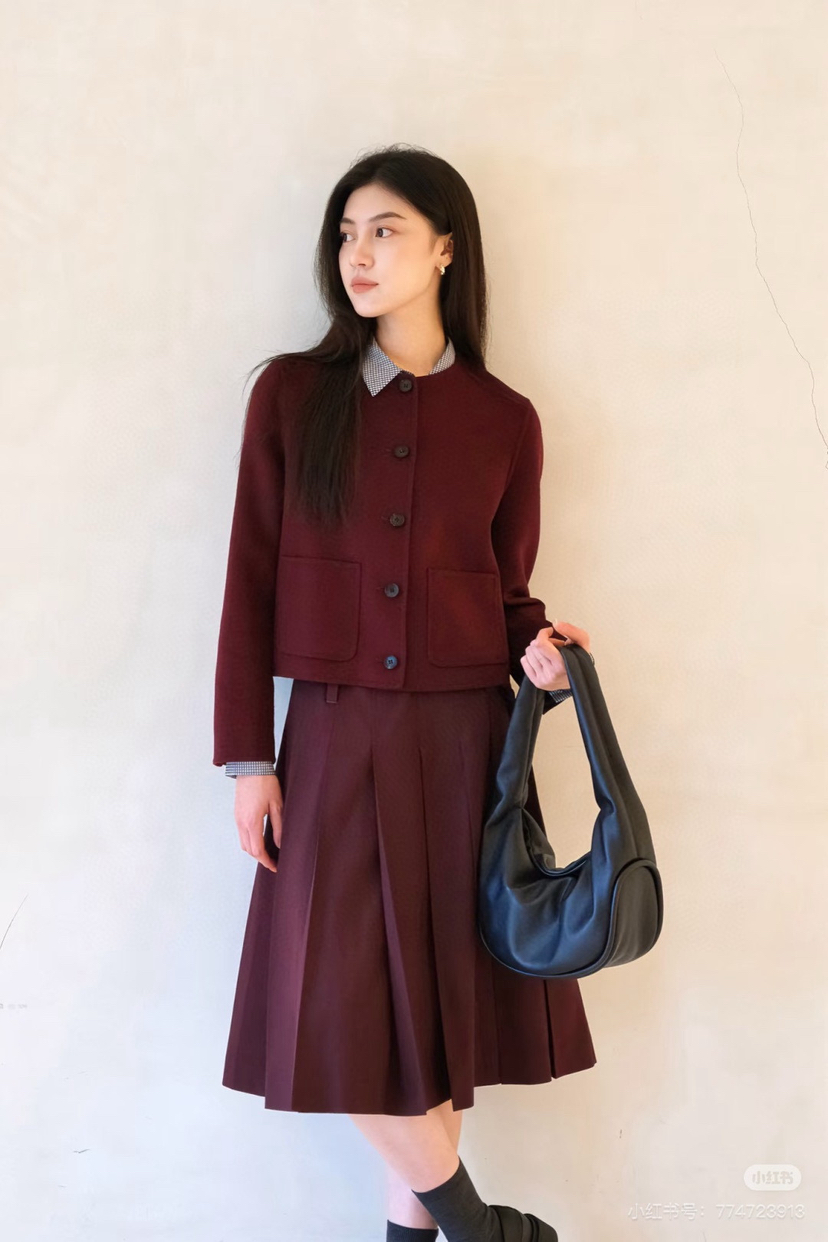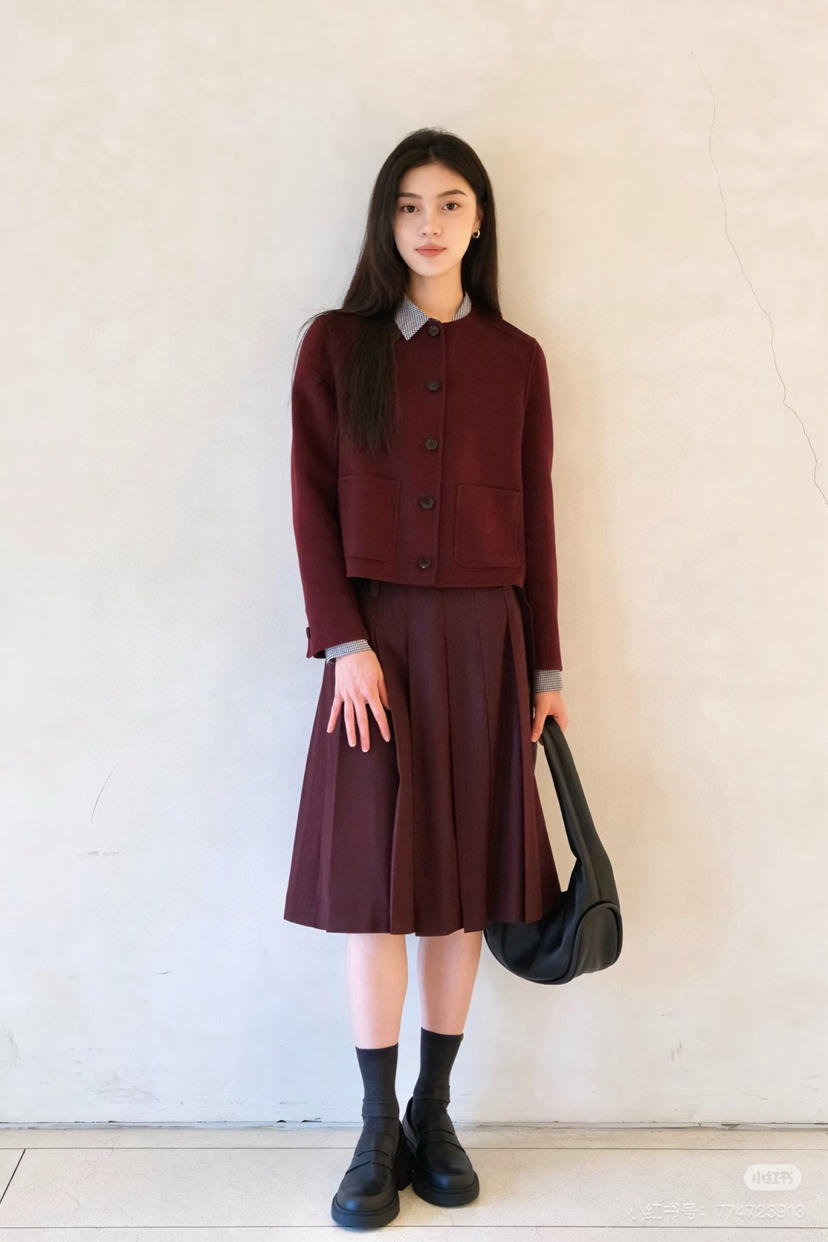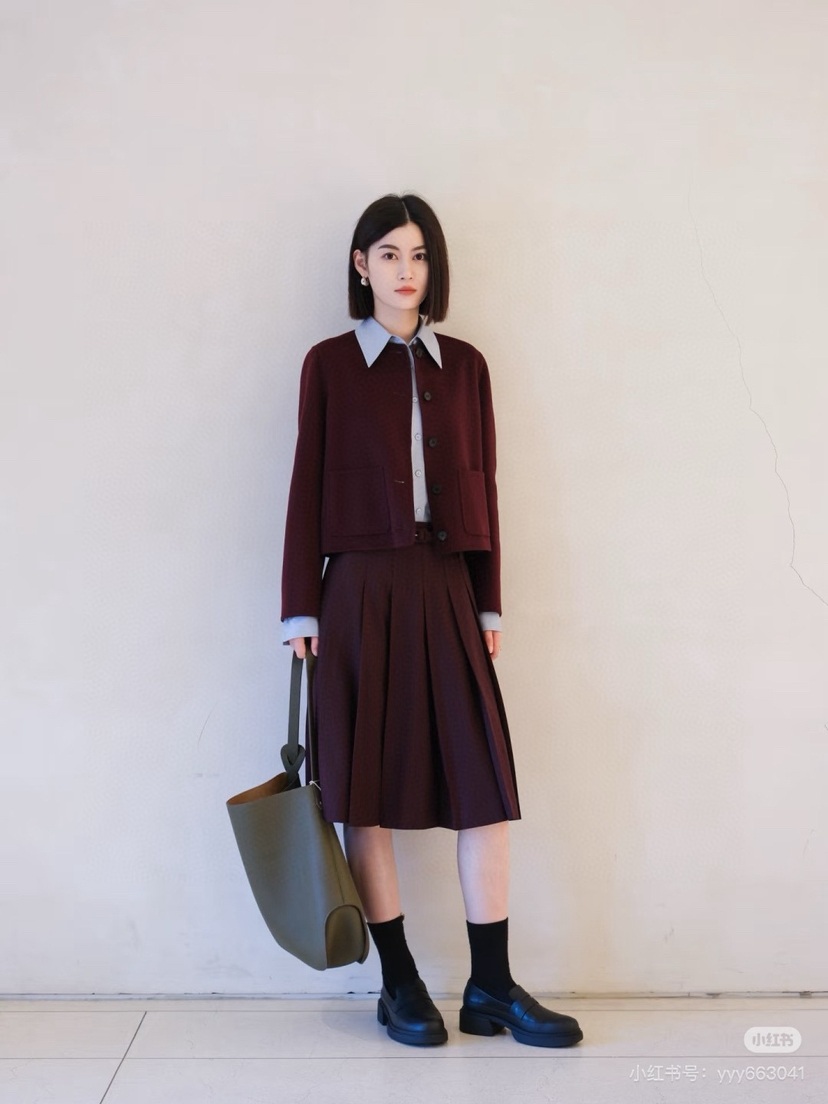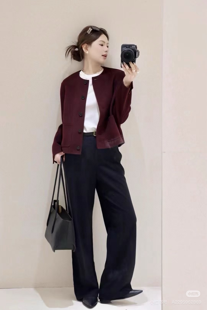 安可拉红搭配格雷系灰色,或者黑色。你们参考一下这个配色,搭配裙装、裤装都好看,大家可以⬇这样参考着搭配穿。高腰线的都行,能拉长腿部线条,视觉上超显高显瘦[爱心]