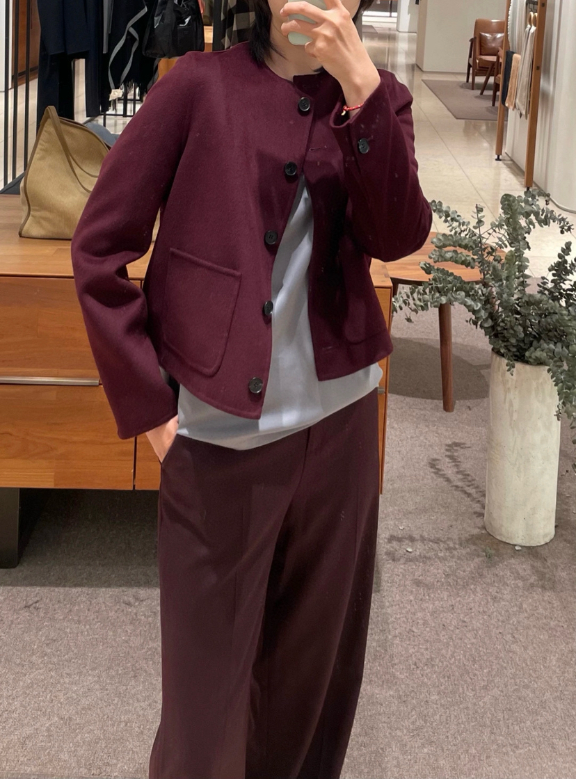 1115-2 小禾 小香风 安可拉红 绵羊毛桑蚕丝 亲肤细腻软糯 双面呢 小洋装 无领短大衣