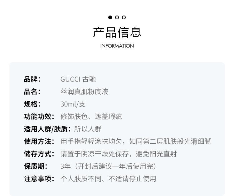 【预售 急单慎拍】GUCCI古驰新款丝润真肌粉底液 30ml