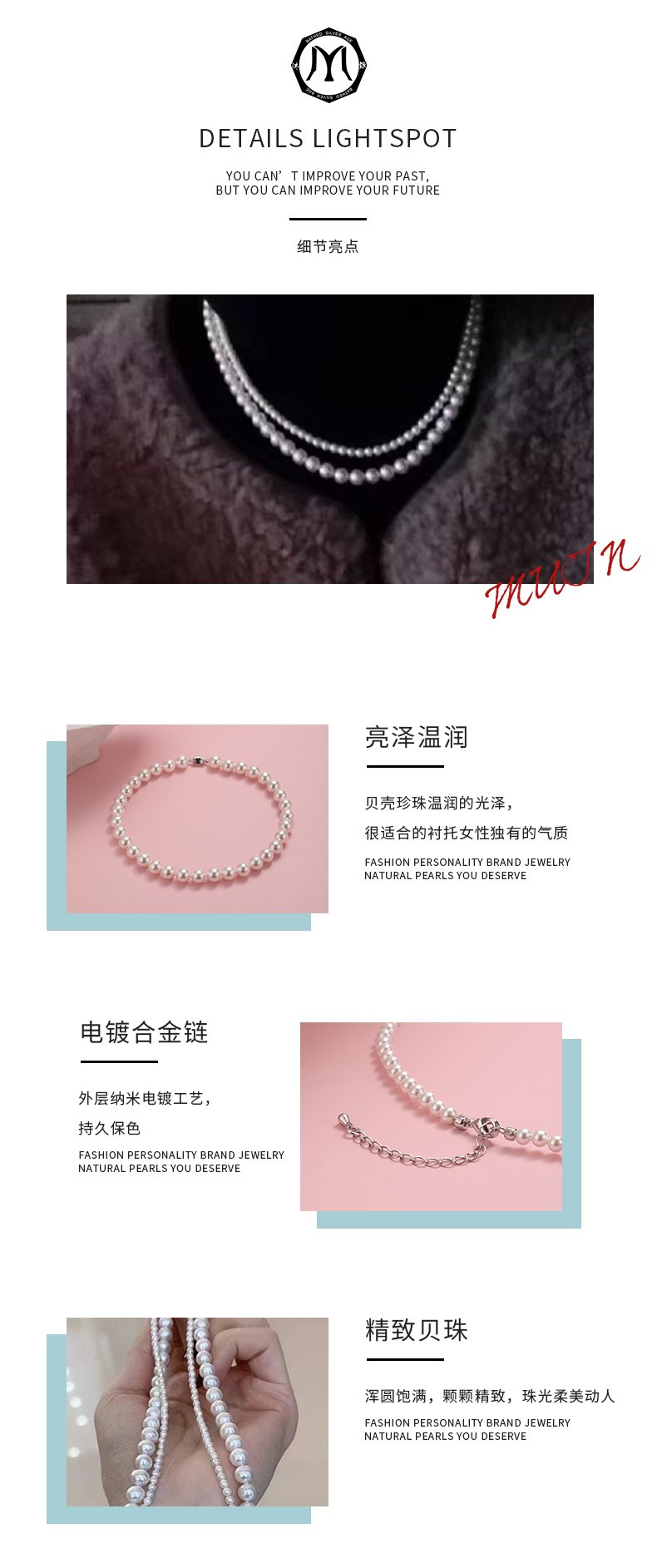 沐银时代 时尚叠戴珍珠项链 ME017+ME019