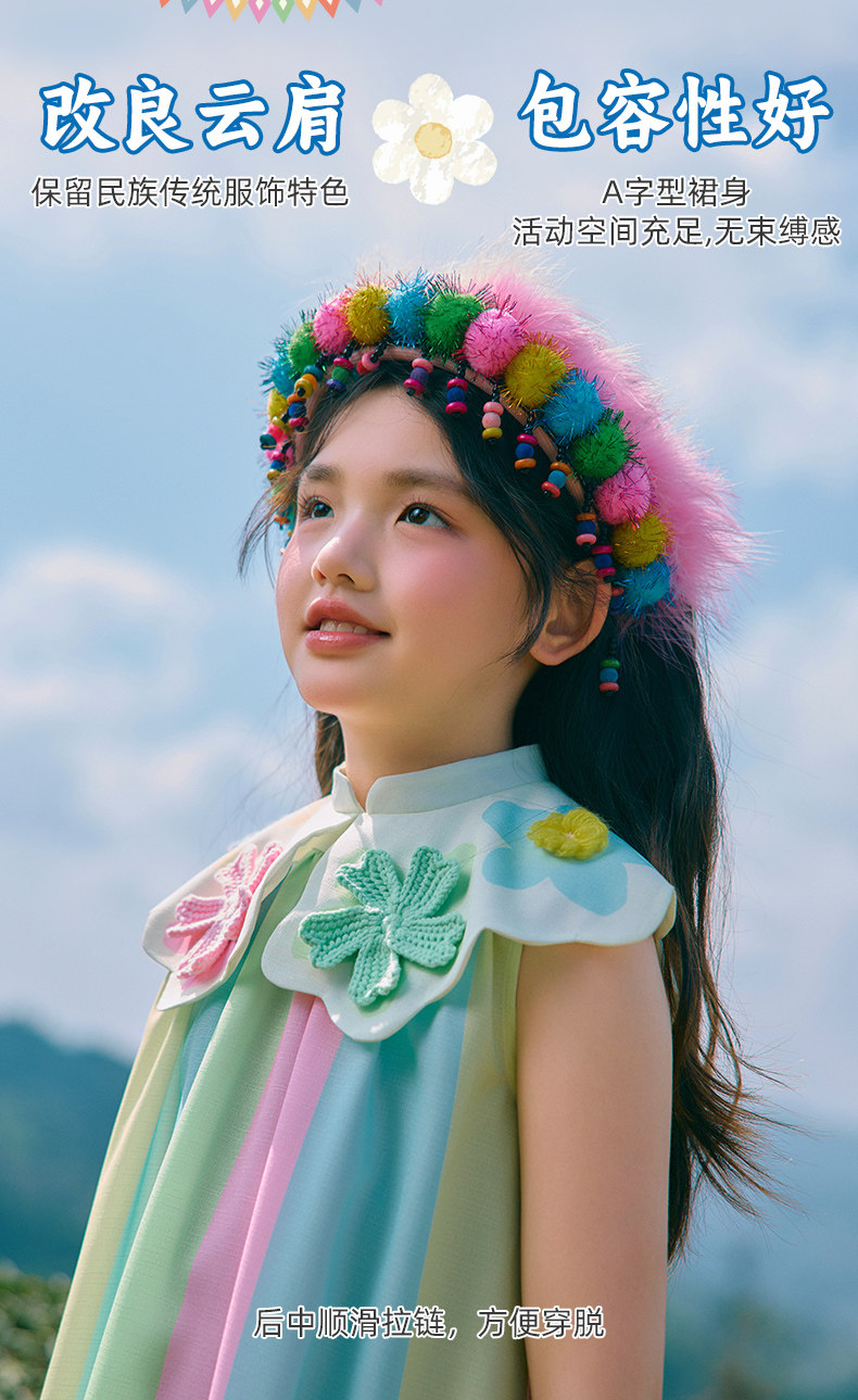 年衣童装儿童连衣裙女童夏季新款民族风公主女孩云肩A字裙子长裙