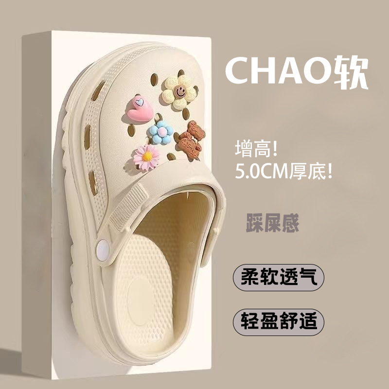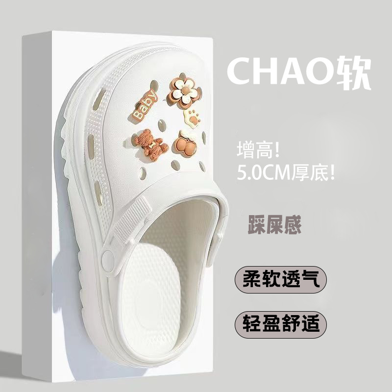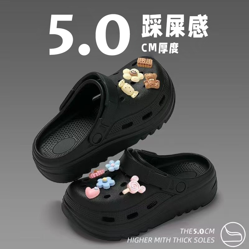【包头防护!透气不闷】厚底洞洞鞋女款新款夏季外穿防滑休闲沙滩eva包头拖鞋男。xb