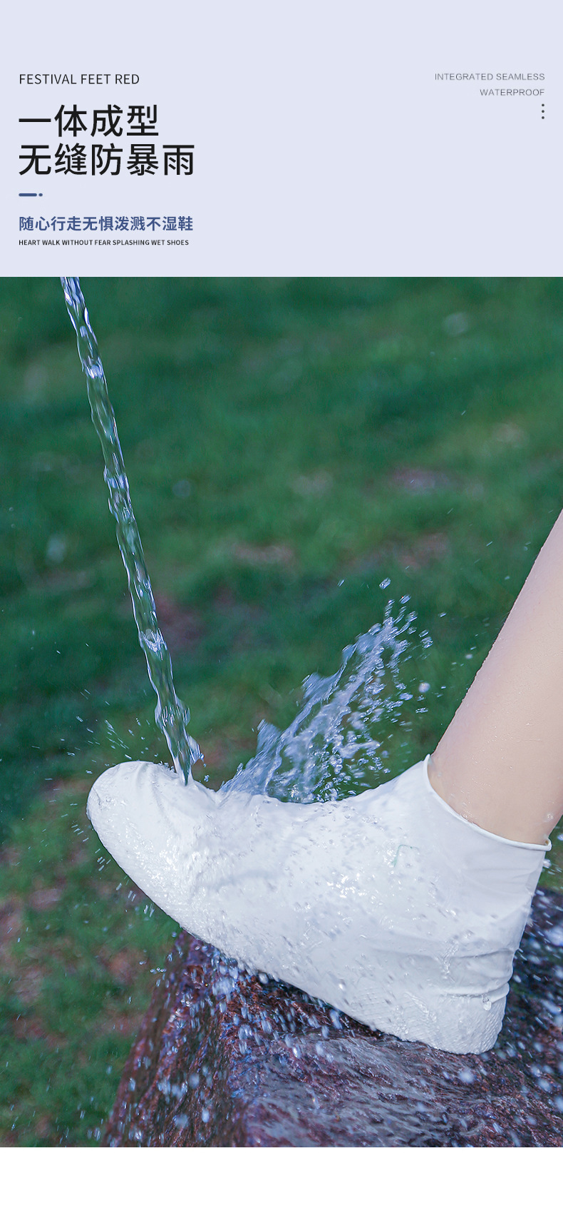 【暴雨级防水不湿鞋、加厚防滑耐磨鞋底】户外防水鞋套随身携带雨天防水防滑防雪耐磨成人乳胶鞋套.TA