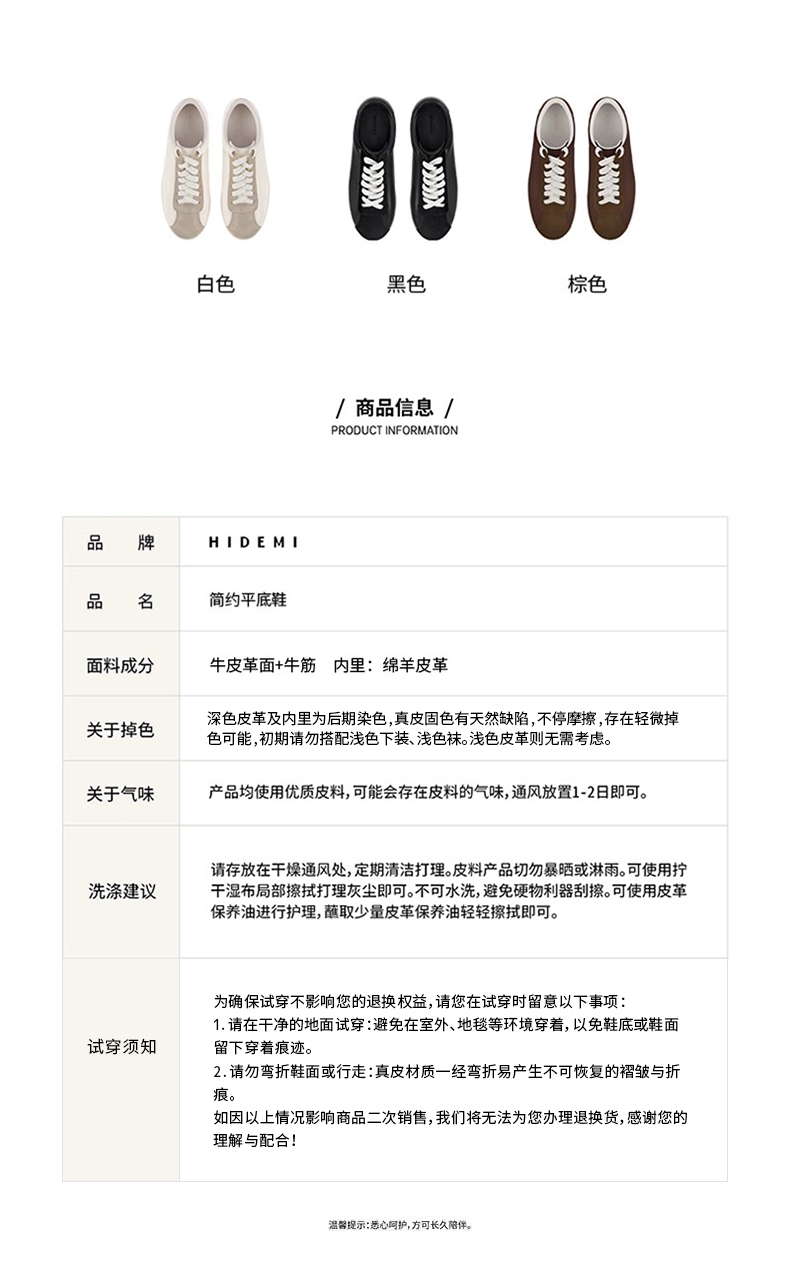 HIDEMI简约设计感小羊皮球鞋sneaker 黑色/白色/棕色