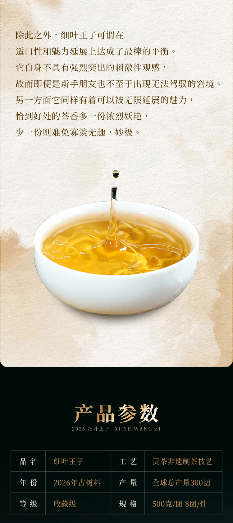 【名额过半!】【细叶王子】2026年春茶预售后山麓王子片区贡茶传奇:一叶难求的极致奢品 品细叶王子,享帝王口福:一汤入口,细腻之中见真质500克/团 8团/件