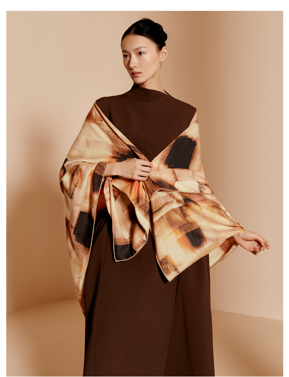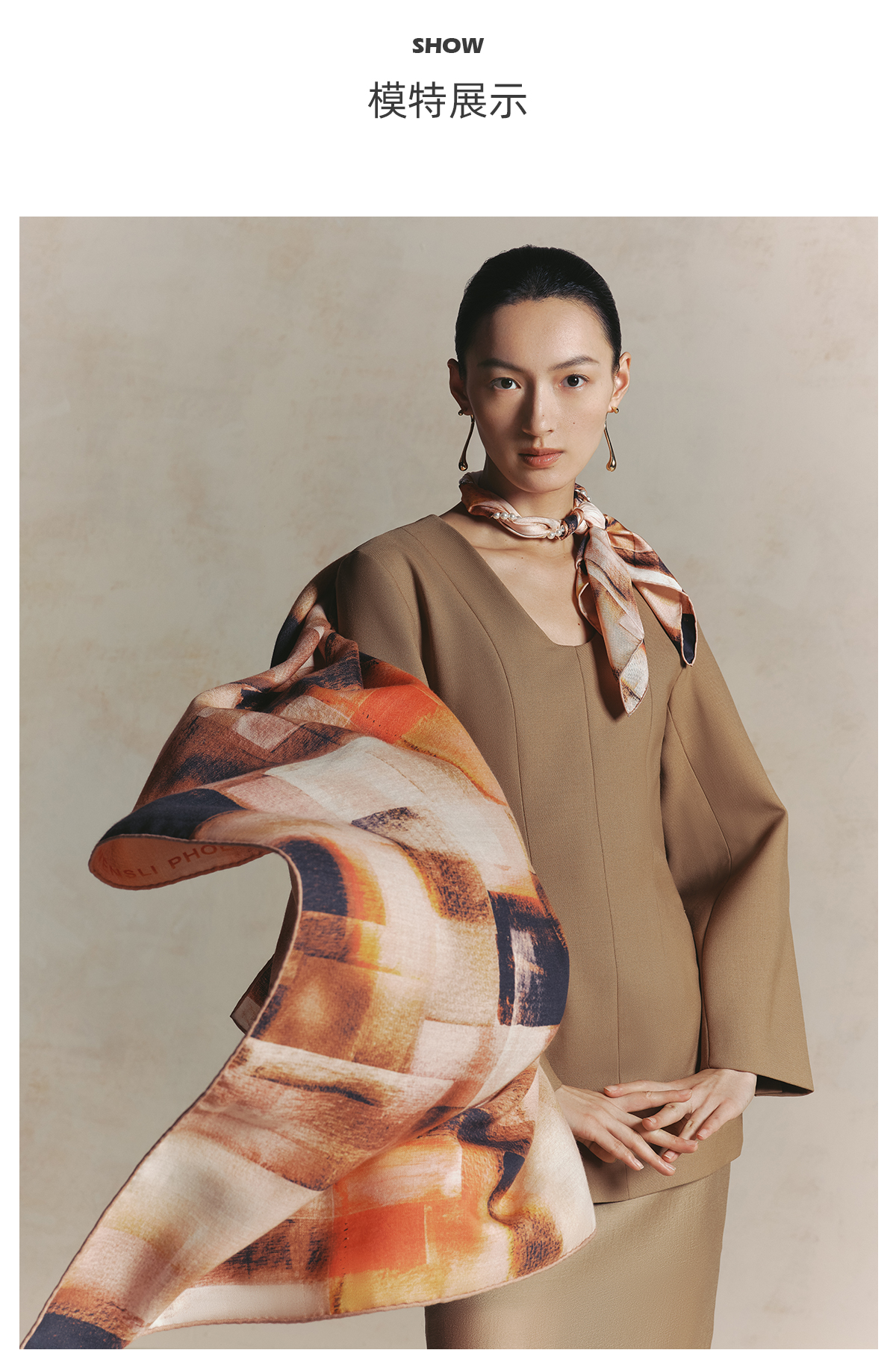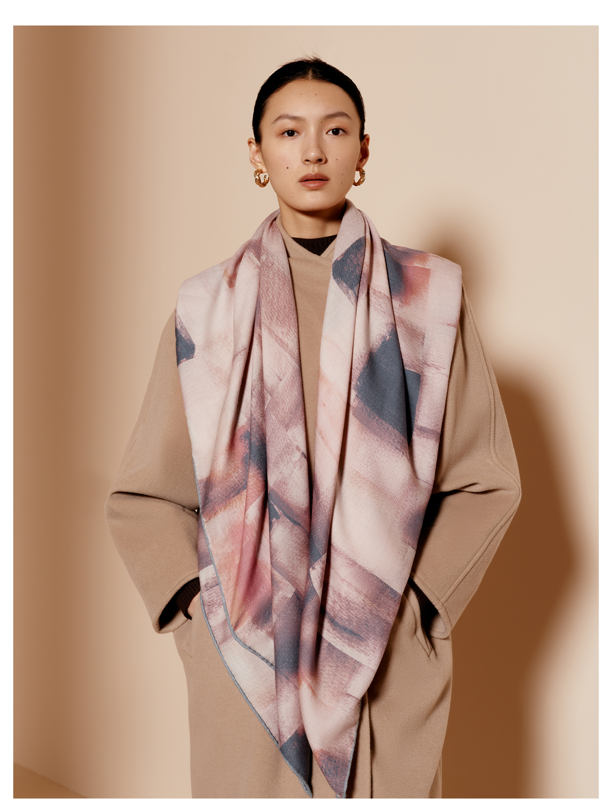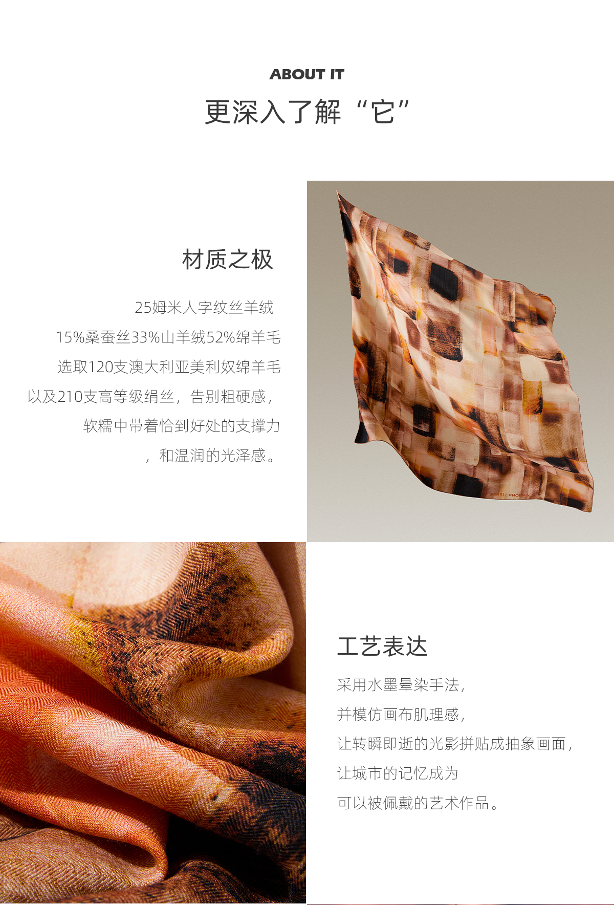 凤凰之家“浮光映城”128厘米双面印花丝羊绒围巾