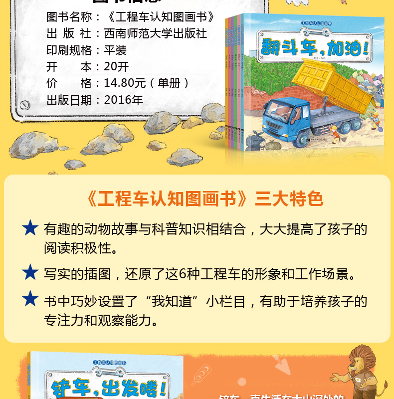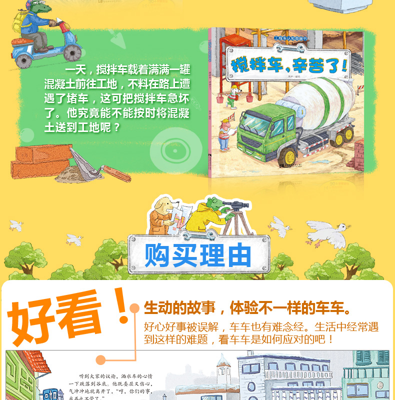 工程车认知图画书全6册(含搅拌车,辛苦了!)