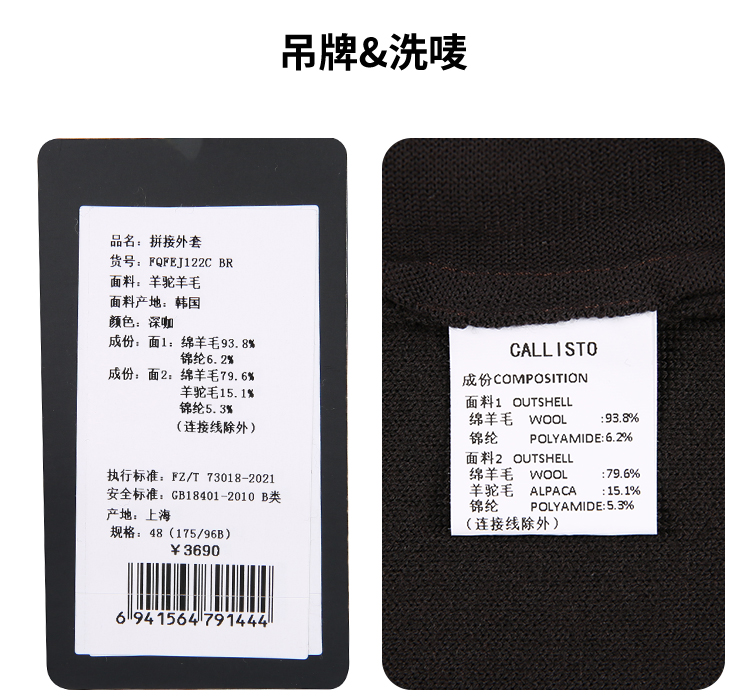 callisto深咖羊驼羊毛拼接外套 FQFEJ122C