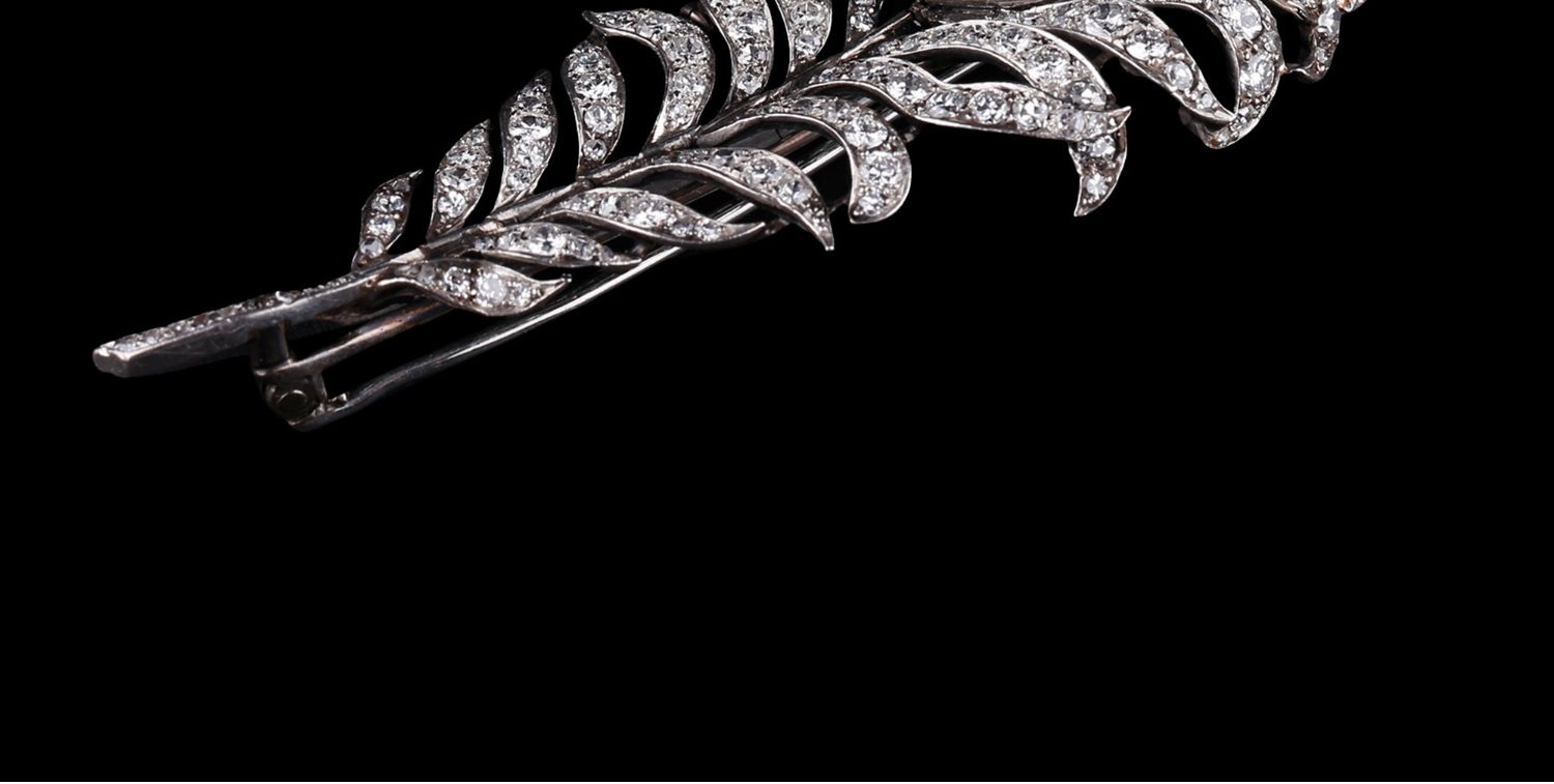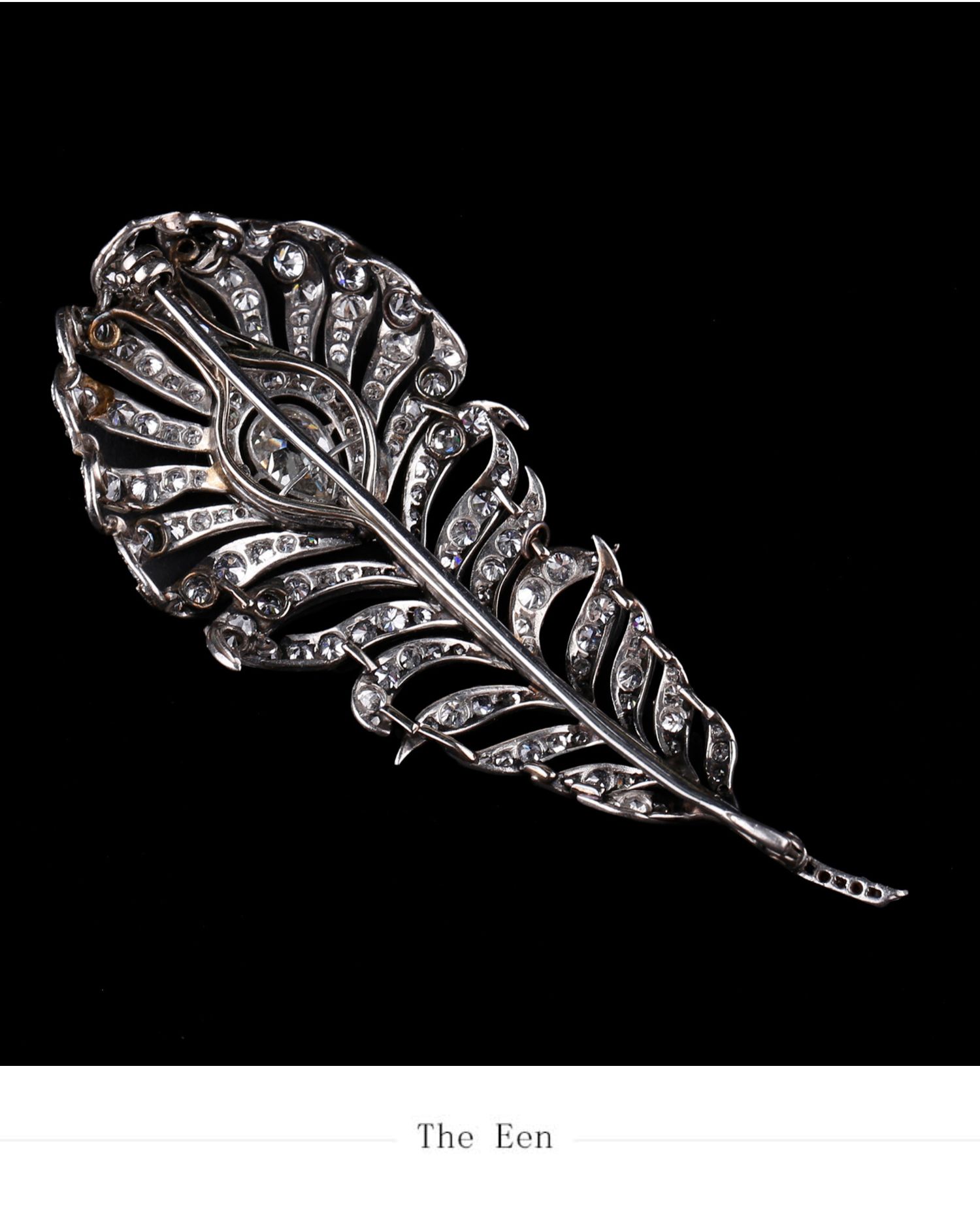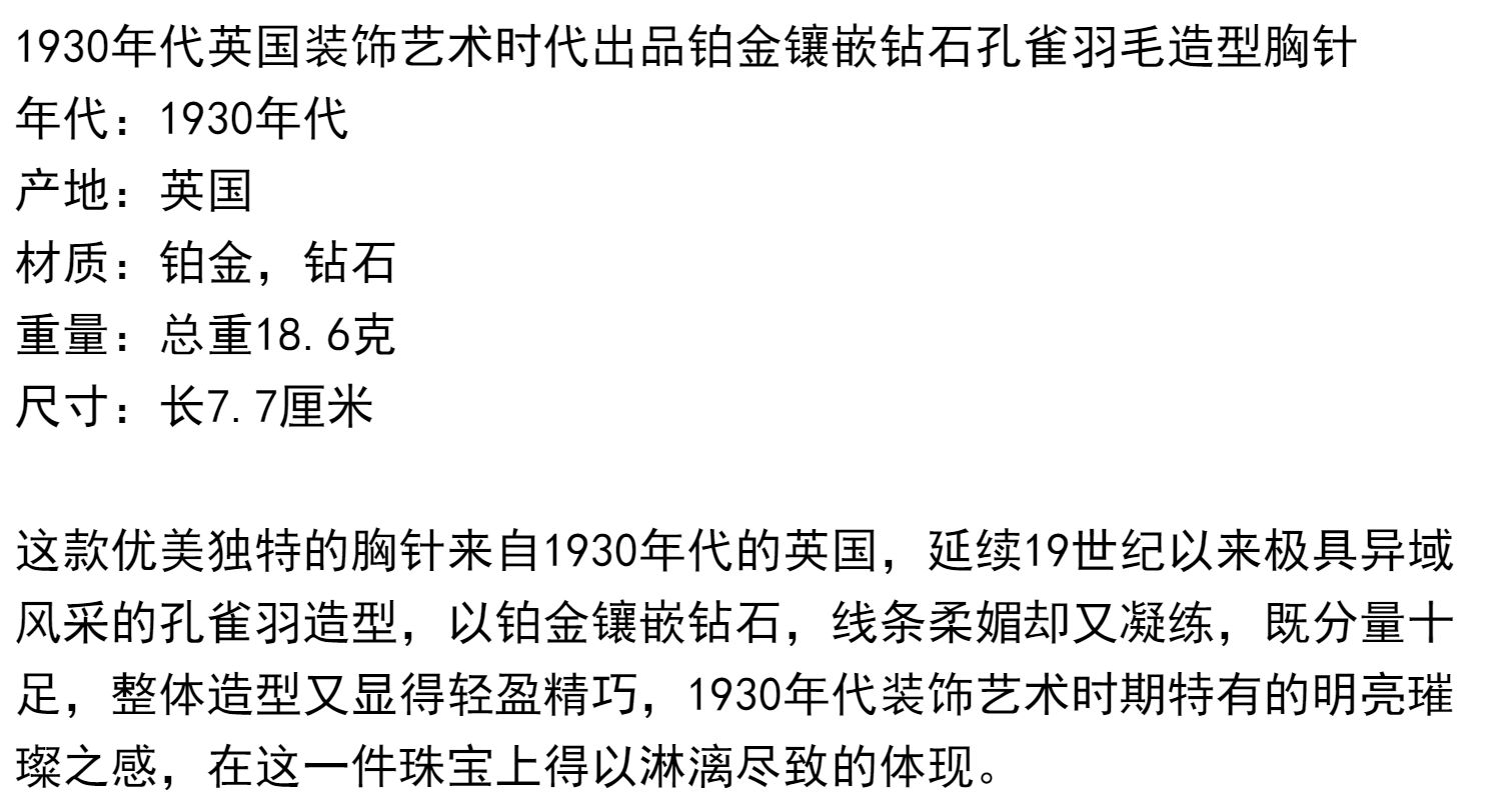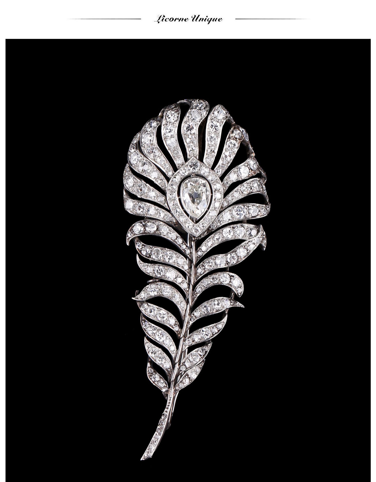 独角鹿西洋古董珠宝英国装饰艺术时铂金镶嵌钻石孔雀羽毛造型胸针