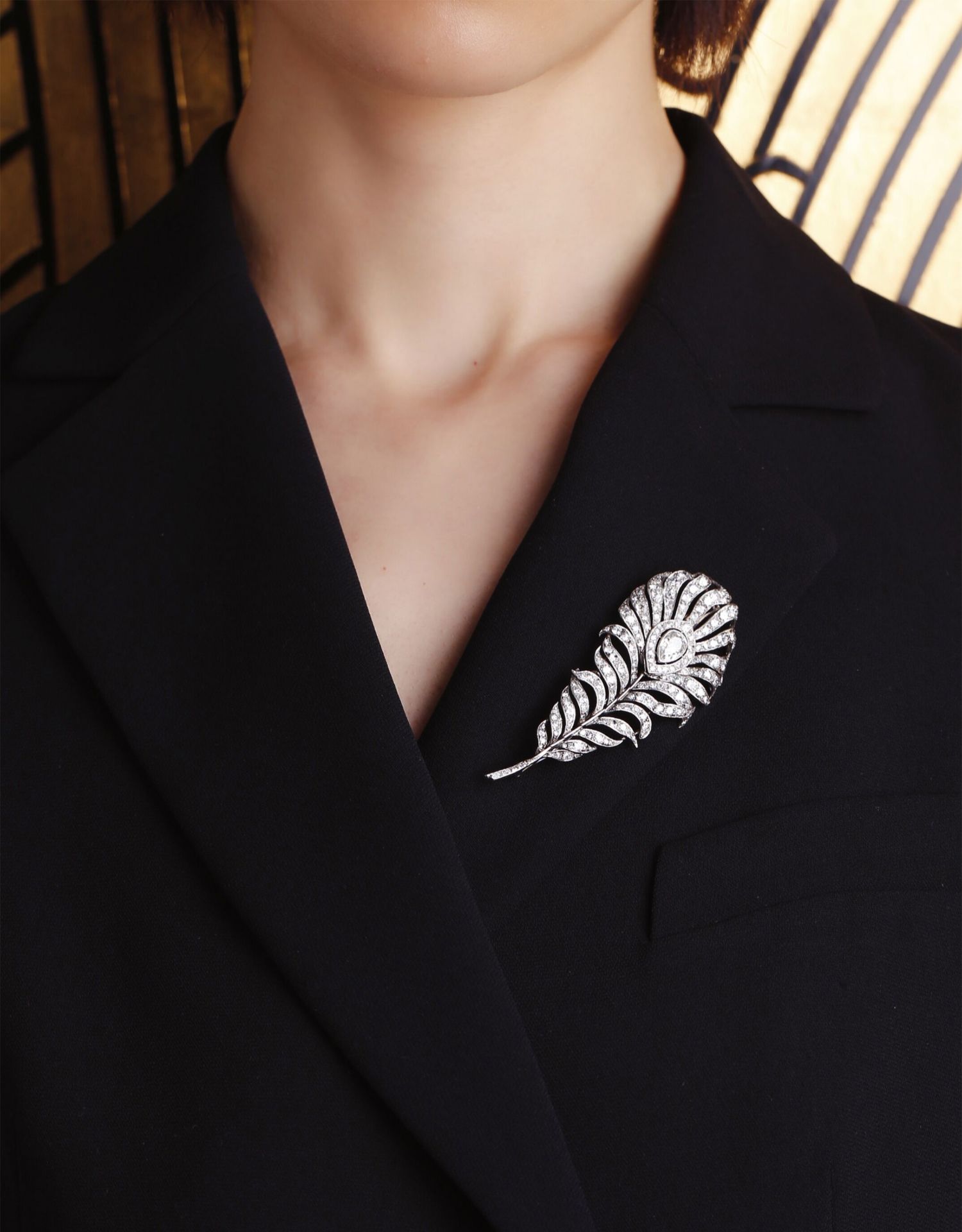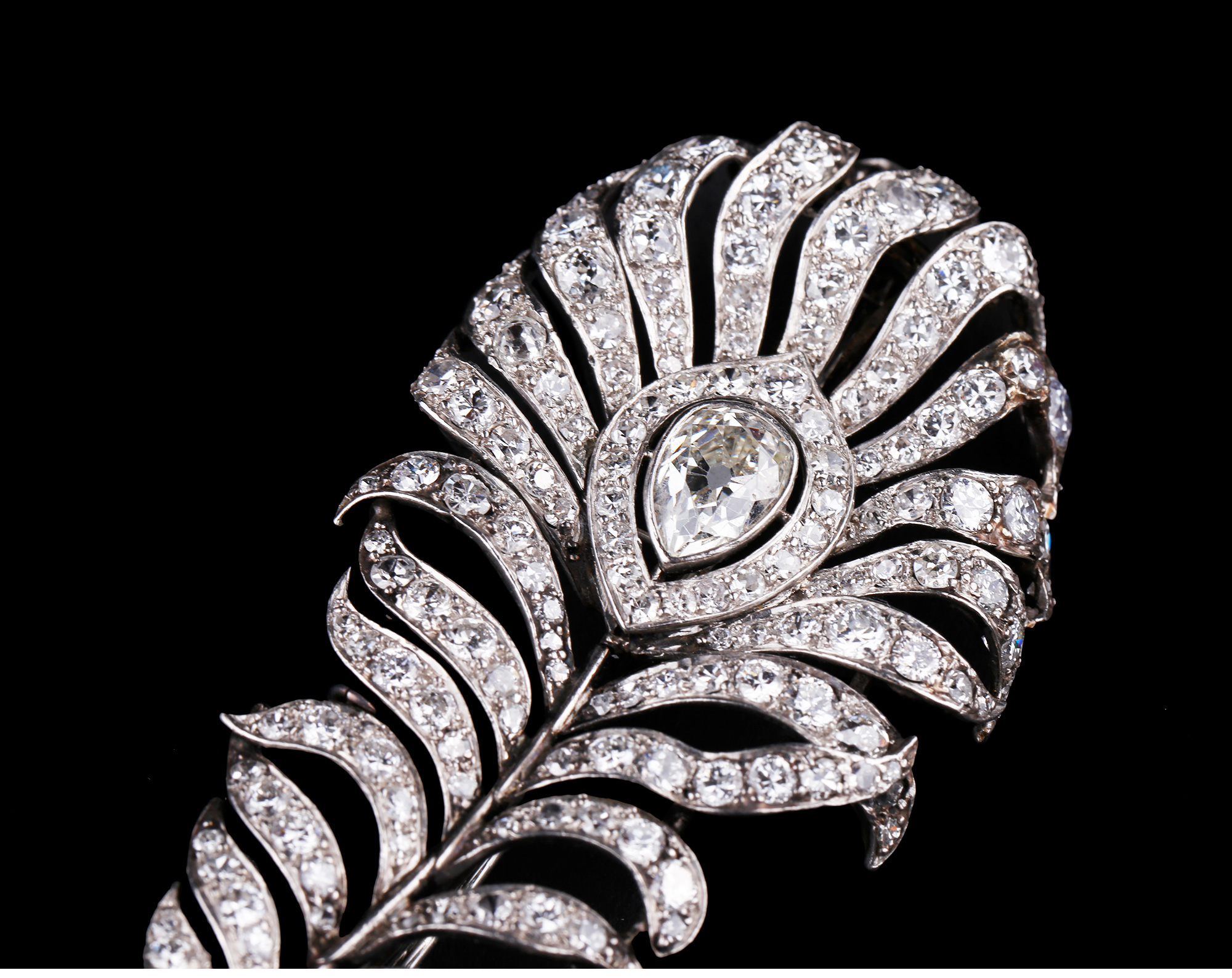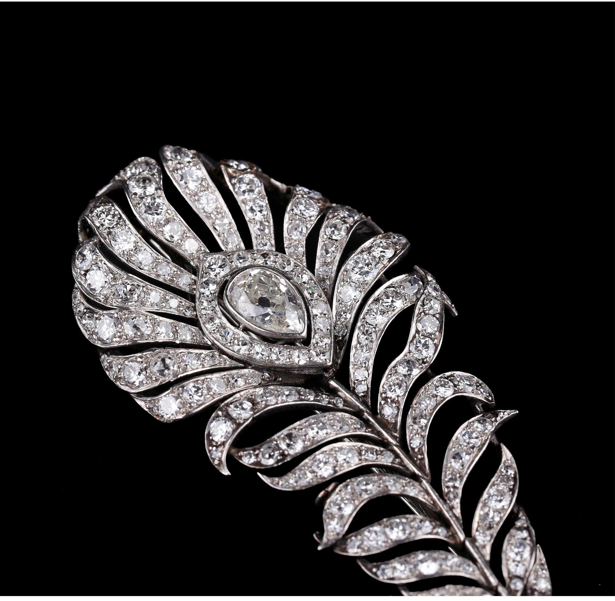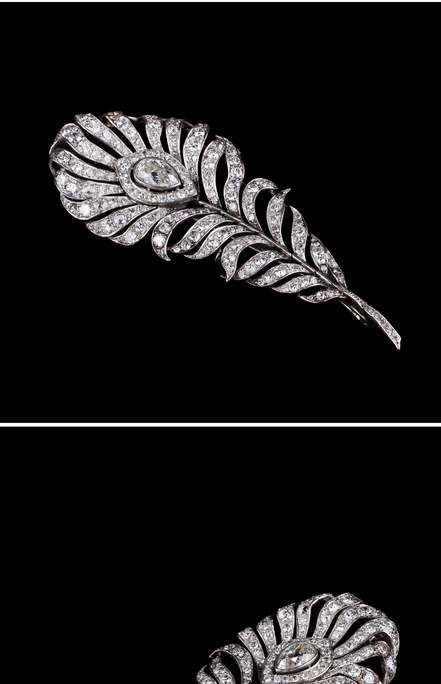 独角鹿西洋古董珠宝英国装饰艺术时铂金镶嵌钻石孔雀羽毛造型胸针