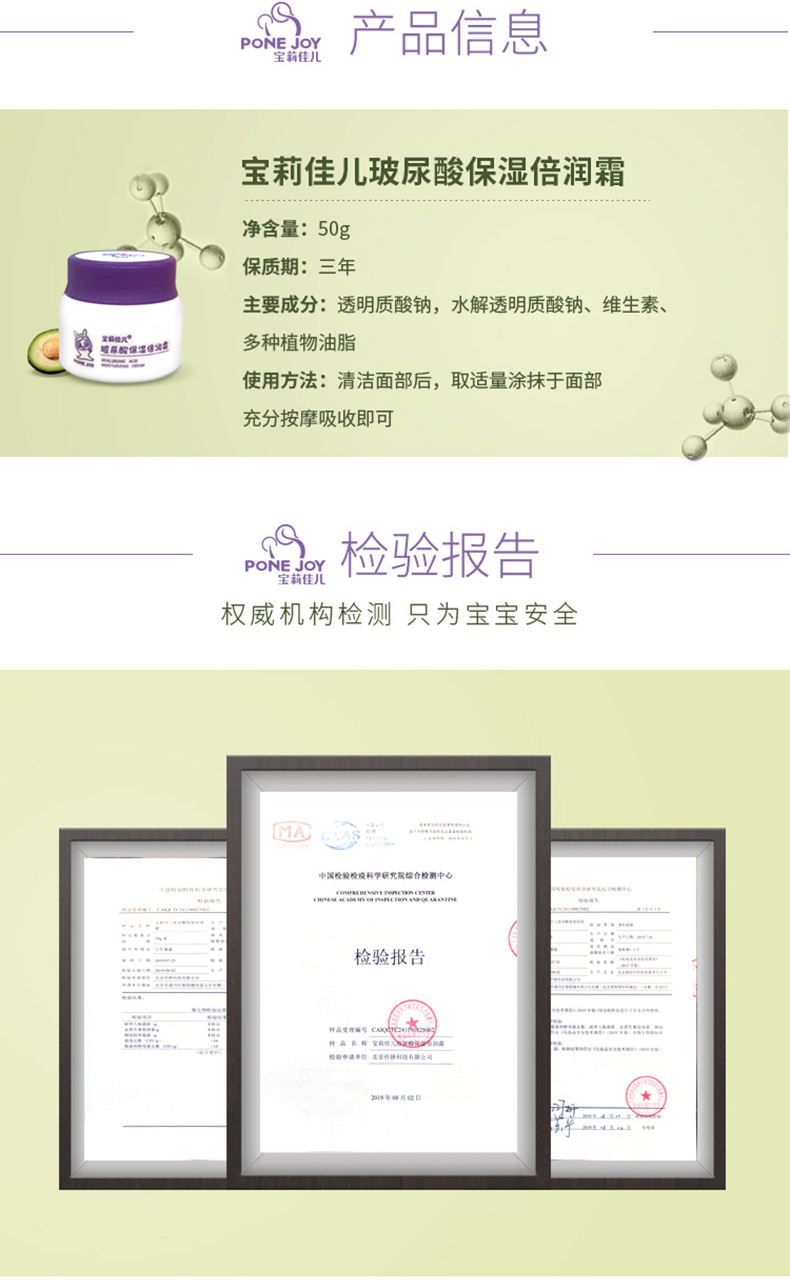 宝莉佳儿玻尿酸保湿倍润霜50g