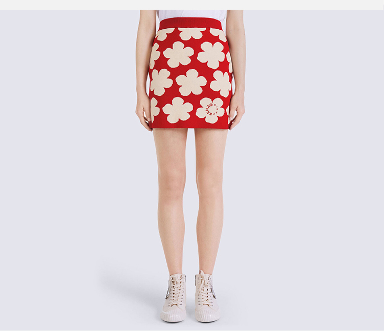 KENZO 高田贤三 女士羊毛 HANA DOTS' 提花迷你针织短裙 红色 FC62 JU326 3CO 21
