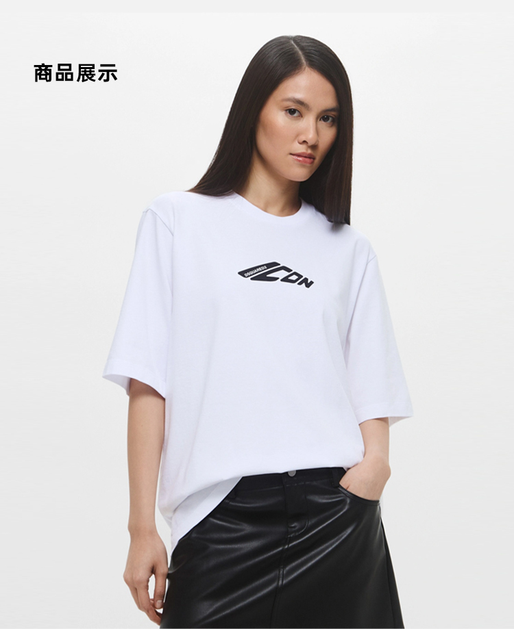 DSQUARED2 女士徽标印花棉质圆领短袖T恤 白色 S80GC0079 D20033 100