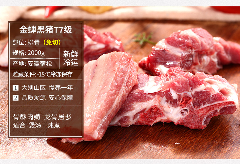 壹号餐桌大别山散养黑猪腿肉(2斤装)+排骨粒(2斤装)(冷冻发货~)