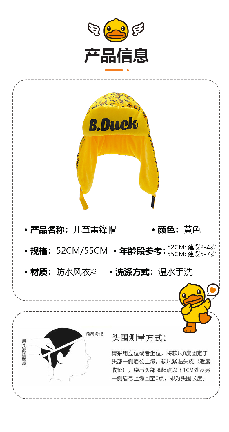 【专柜同款精品】B.DUCK护耳保暖雷锋帽52CM/55CM
