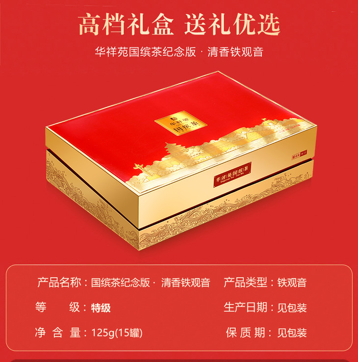 华祥苑 国缤茶纪念版 清香型铁观音 小红罐 礼盒装125g