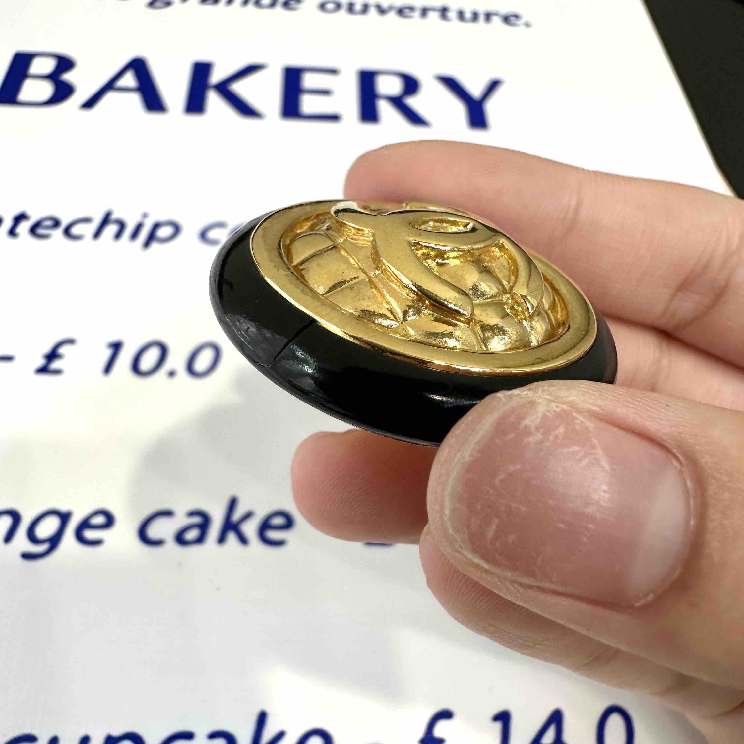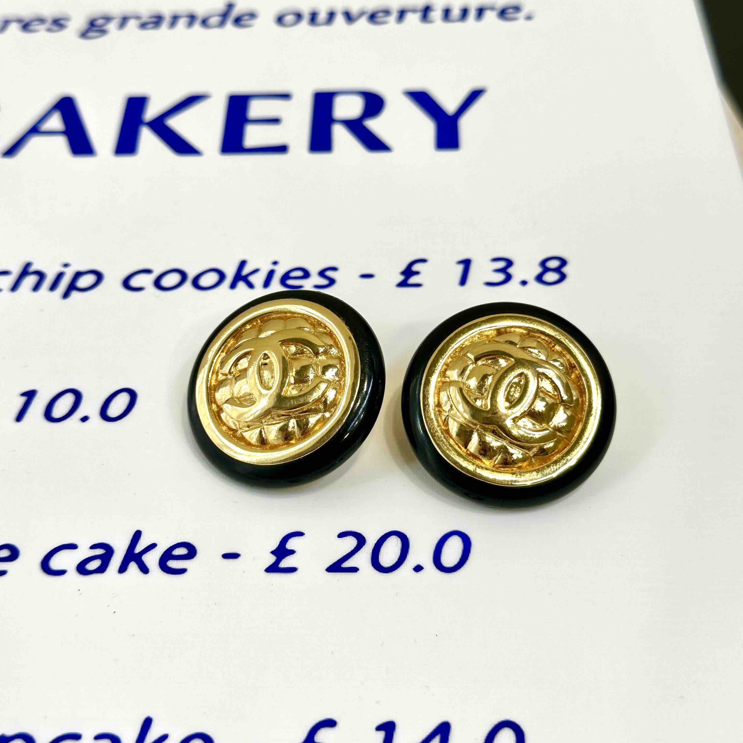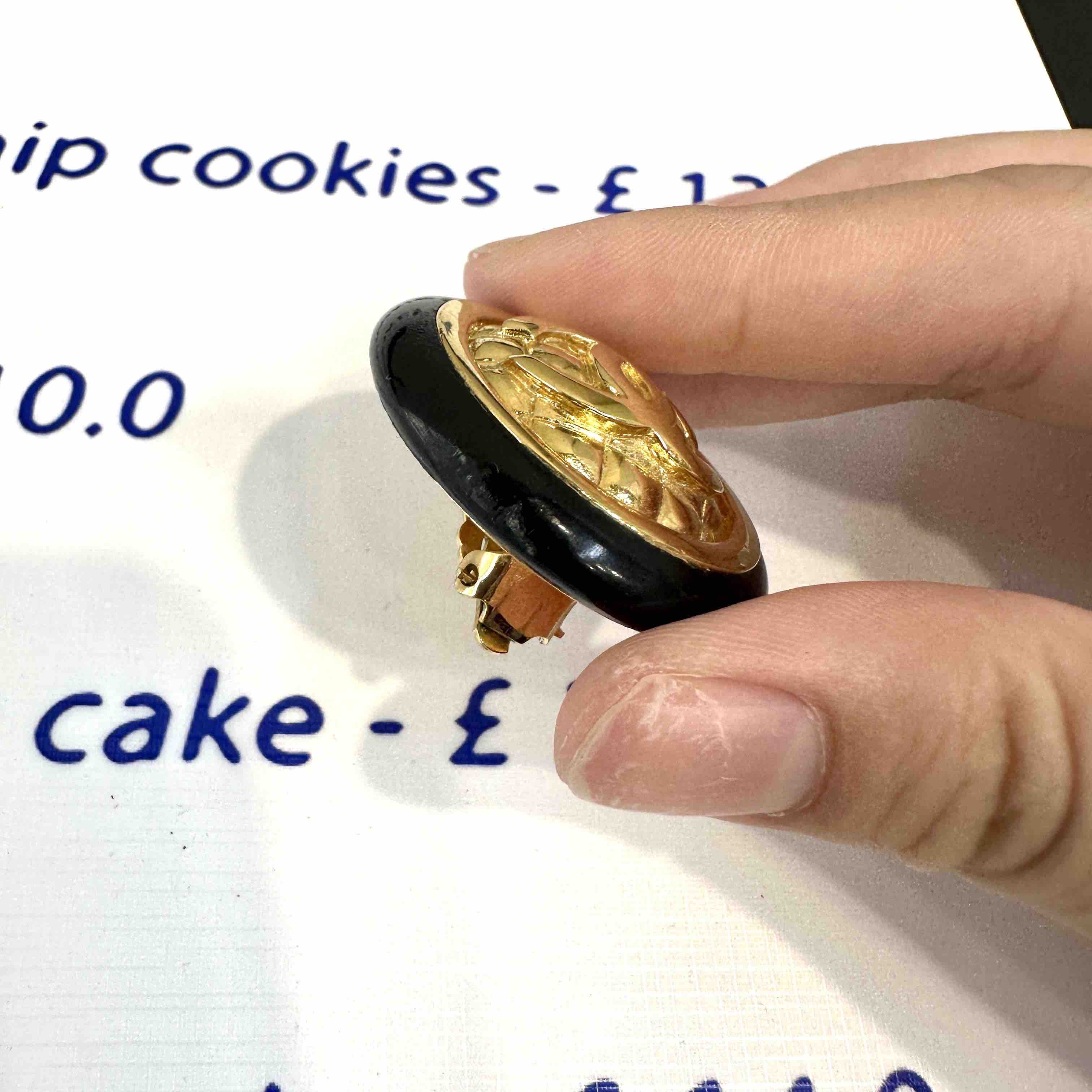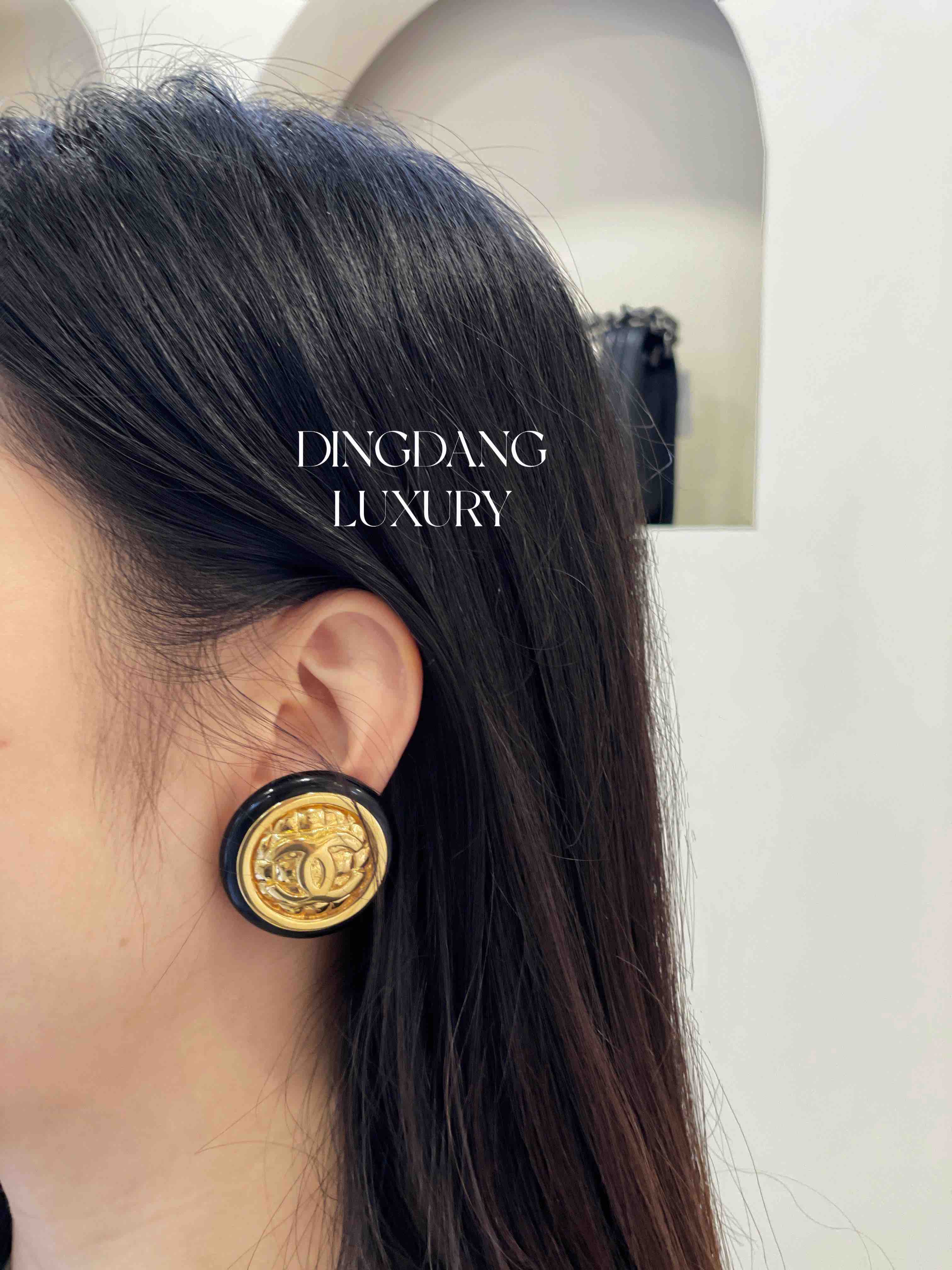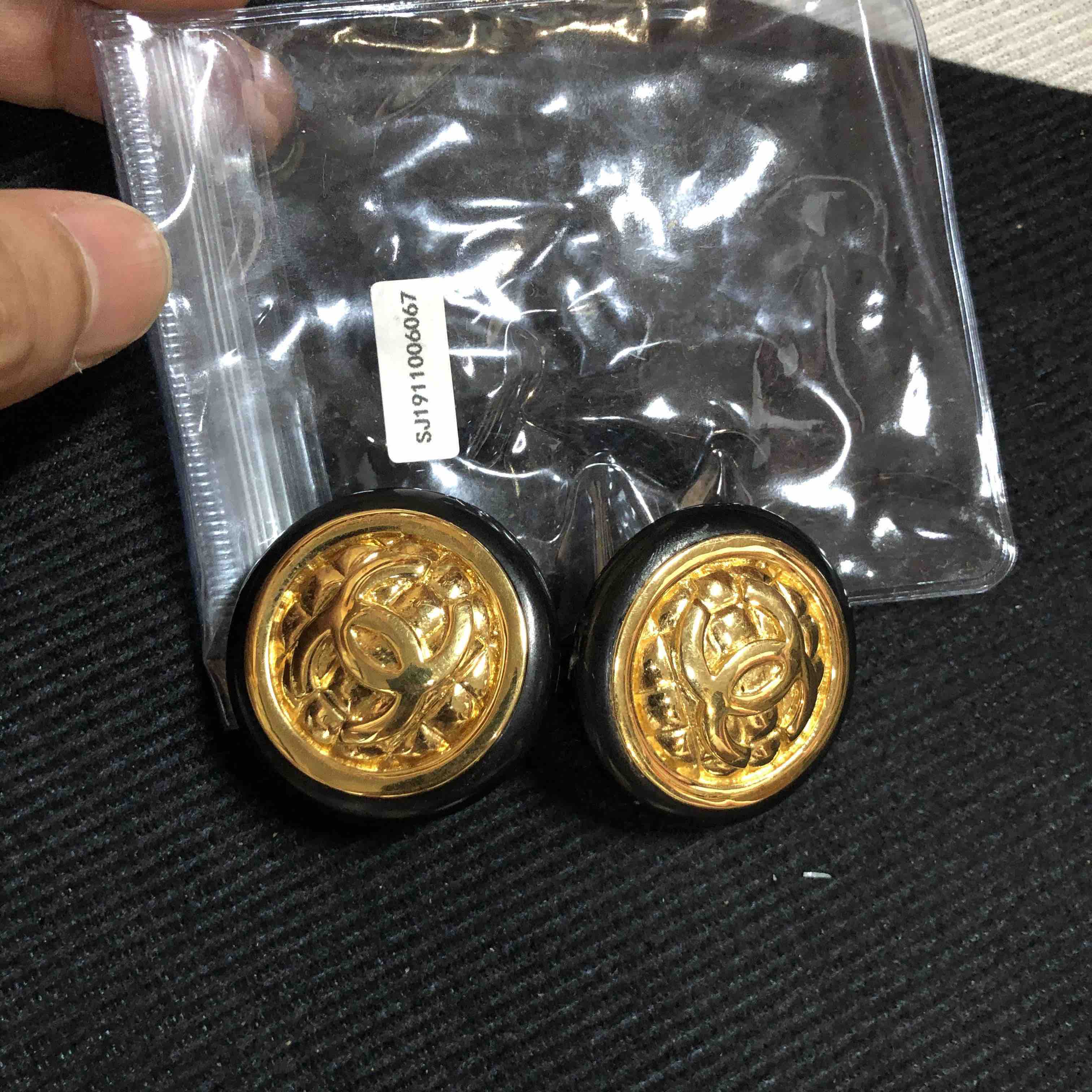 【商品描述】正品二手 CHANEL vintage 黑金 大号 耳钉🧚🏻♀️93新 35mm。框边有一处裂痕 金色部分轻微使用痕迹