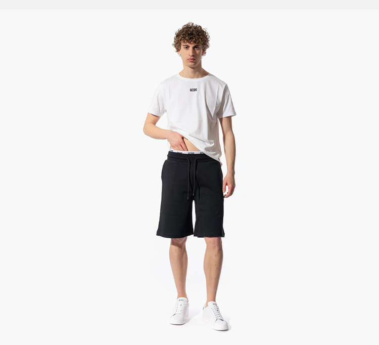 GCDS 男士字母徽标标签棉质休闲短裤 黑色 A2EU3116UW0 99