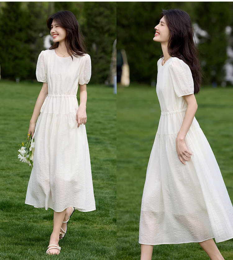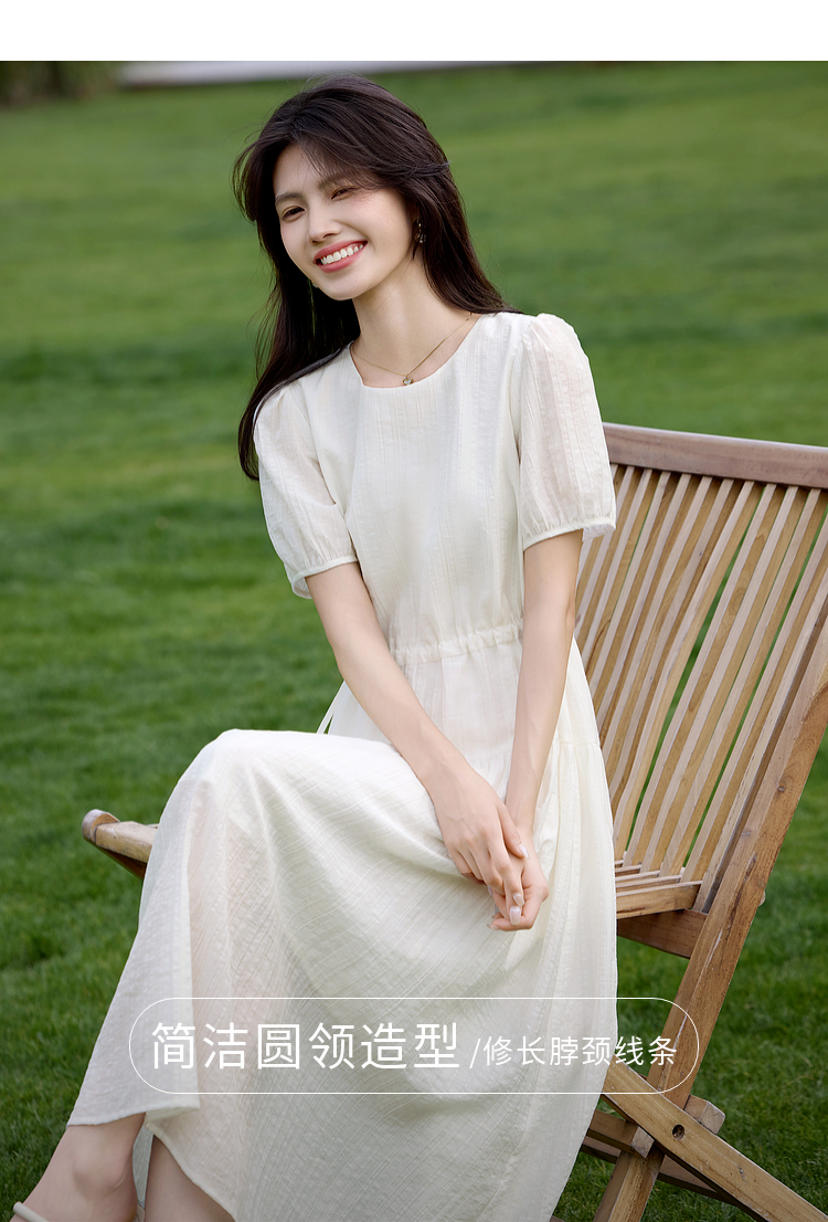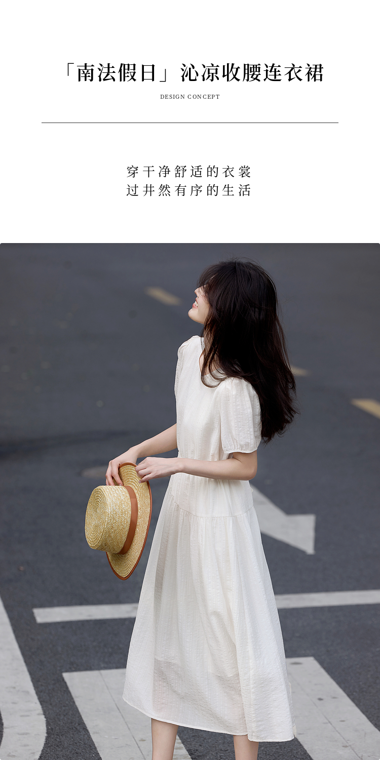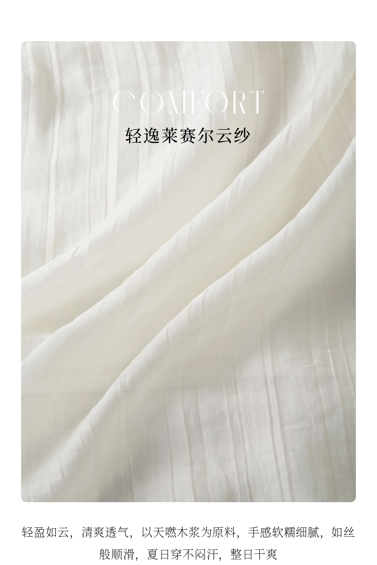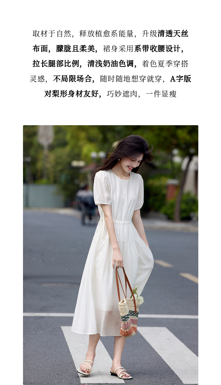 熙世界法式白色连衣裙女高级感气质收腰莱赛尔天丝长裙子夏季新款