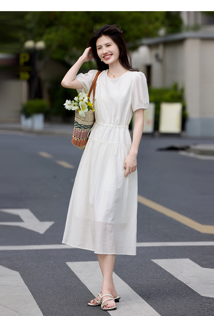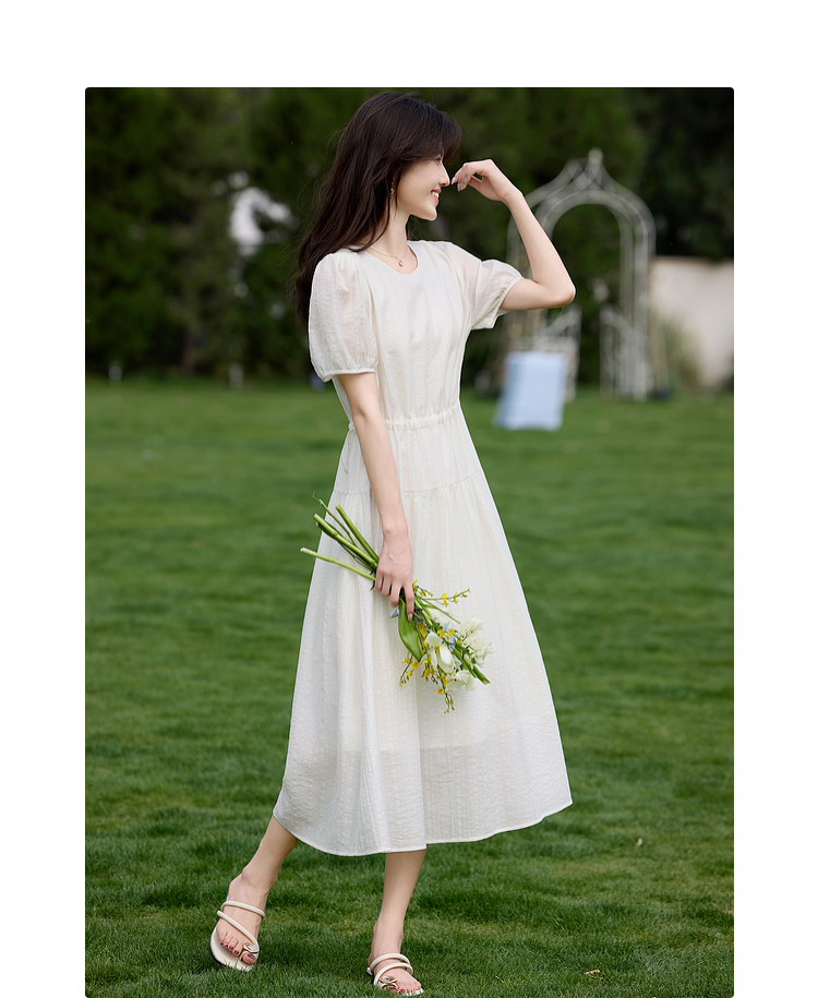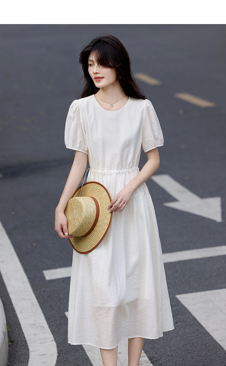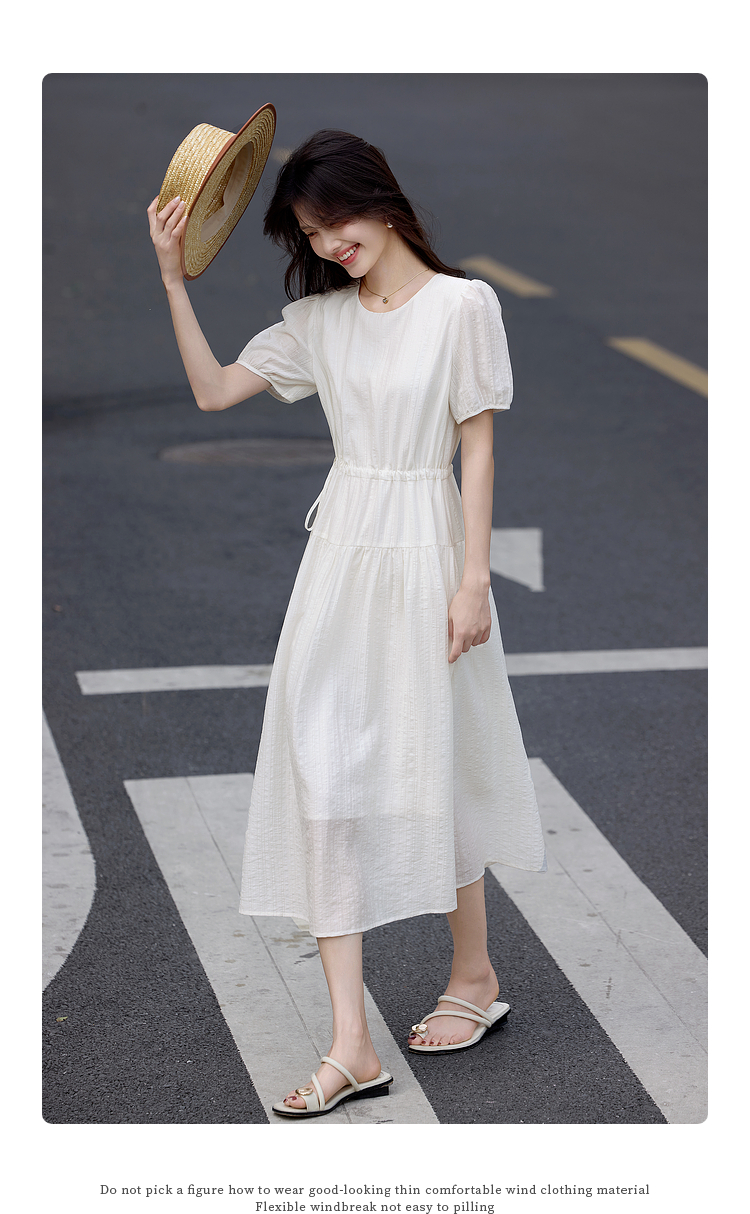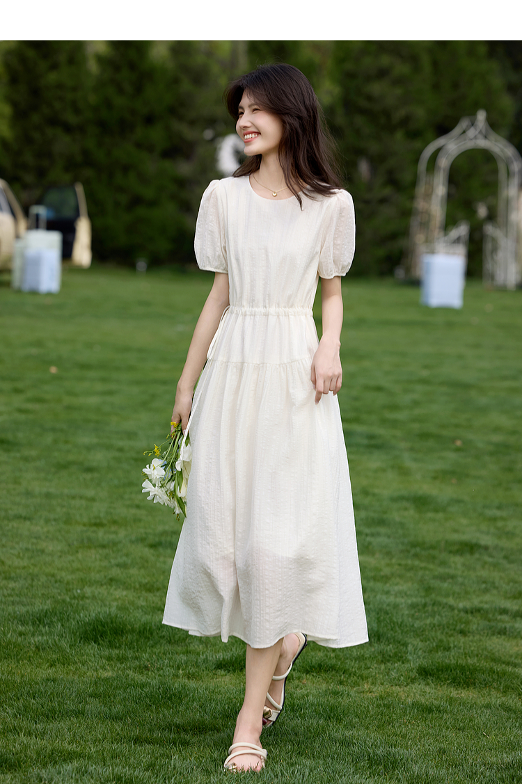熙世界法式白色连衣裙女高级感气质收腰莱赛尔天丝长裙子夏季新款