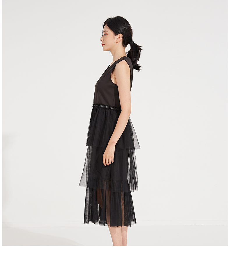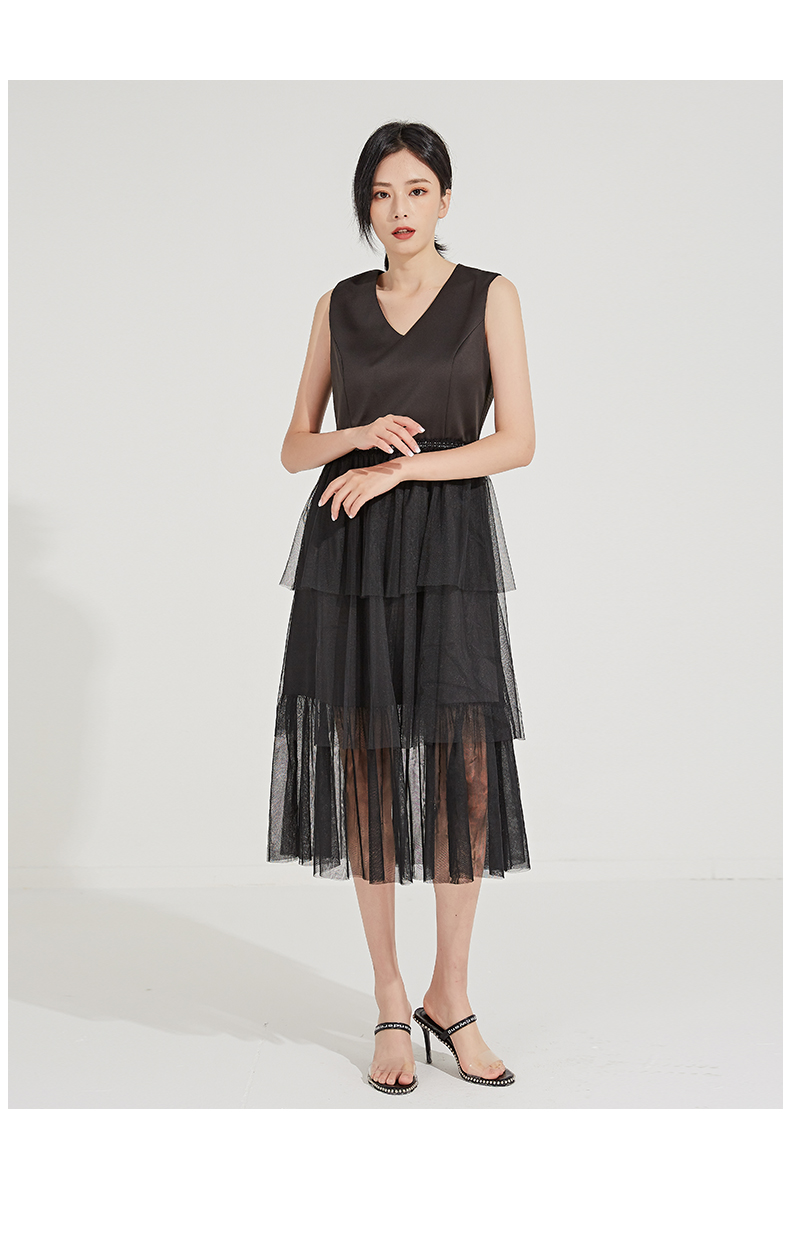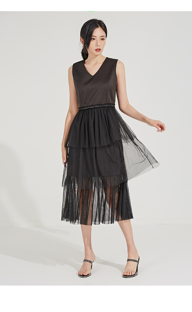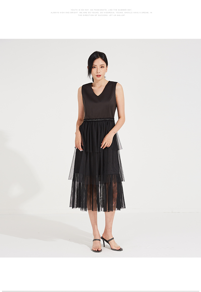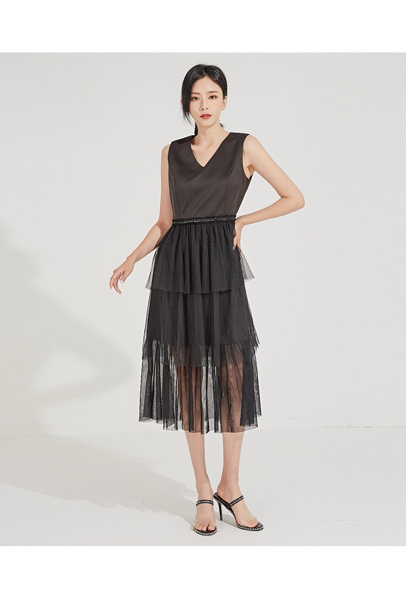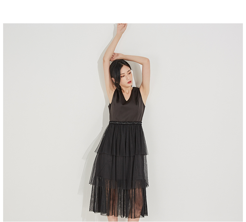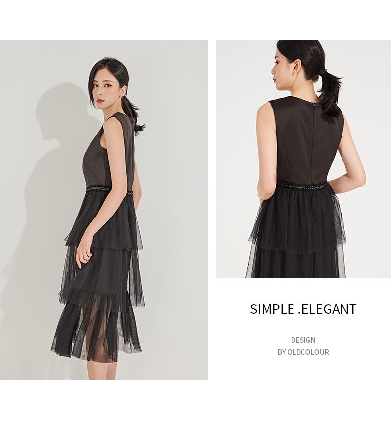 oldcolour春秋季V领纯色时尚优雅连衣裙GL31104830