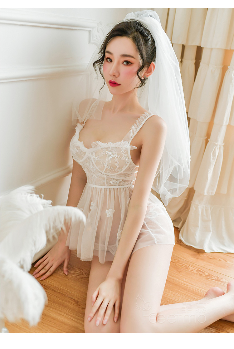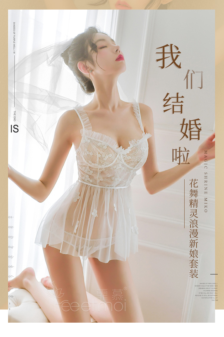 【小乔初嫁了】情趣内衣 制服 蕾丝 睡衣 性感 网纱 新娘 吊带 睡裙 套装 7763