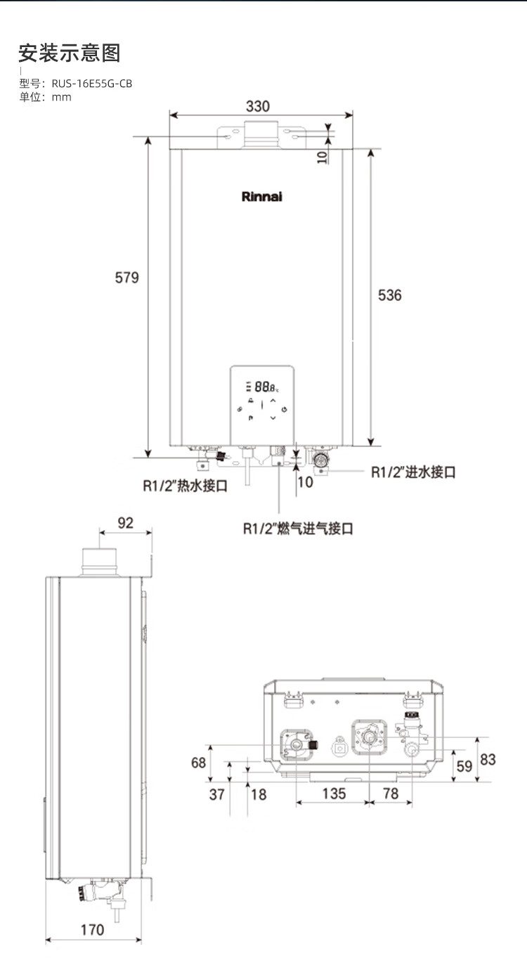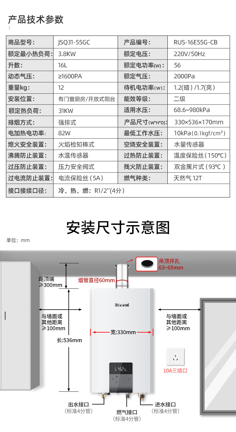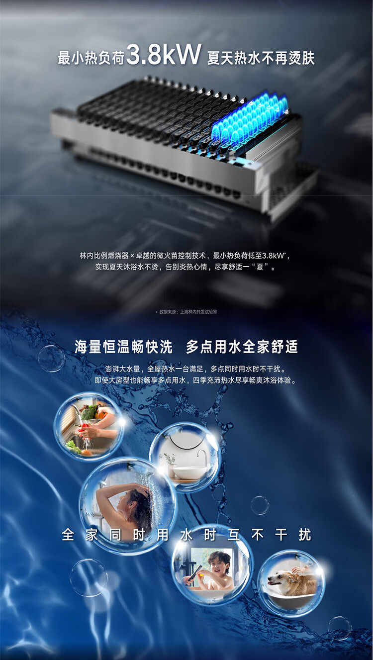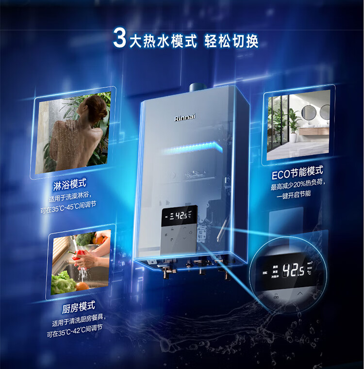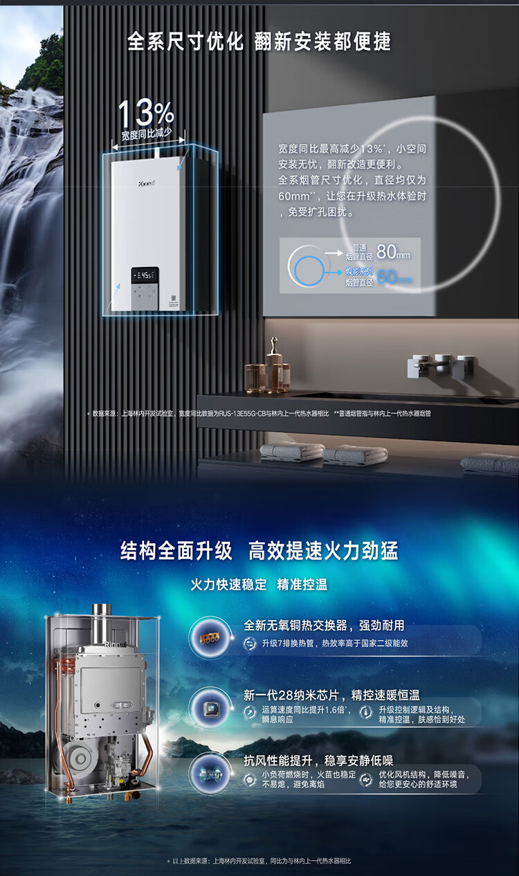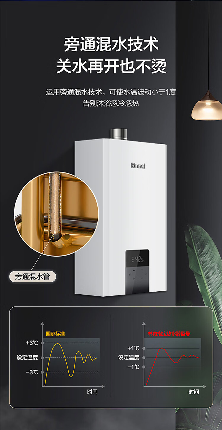 林内 水量伺服器恒温家用强排式燃气热水器 16L 16E55G-CB 天然气